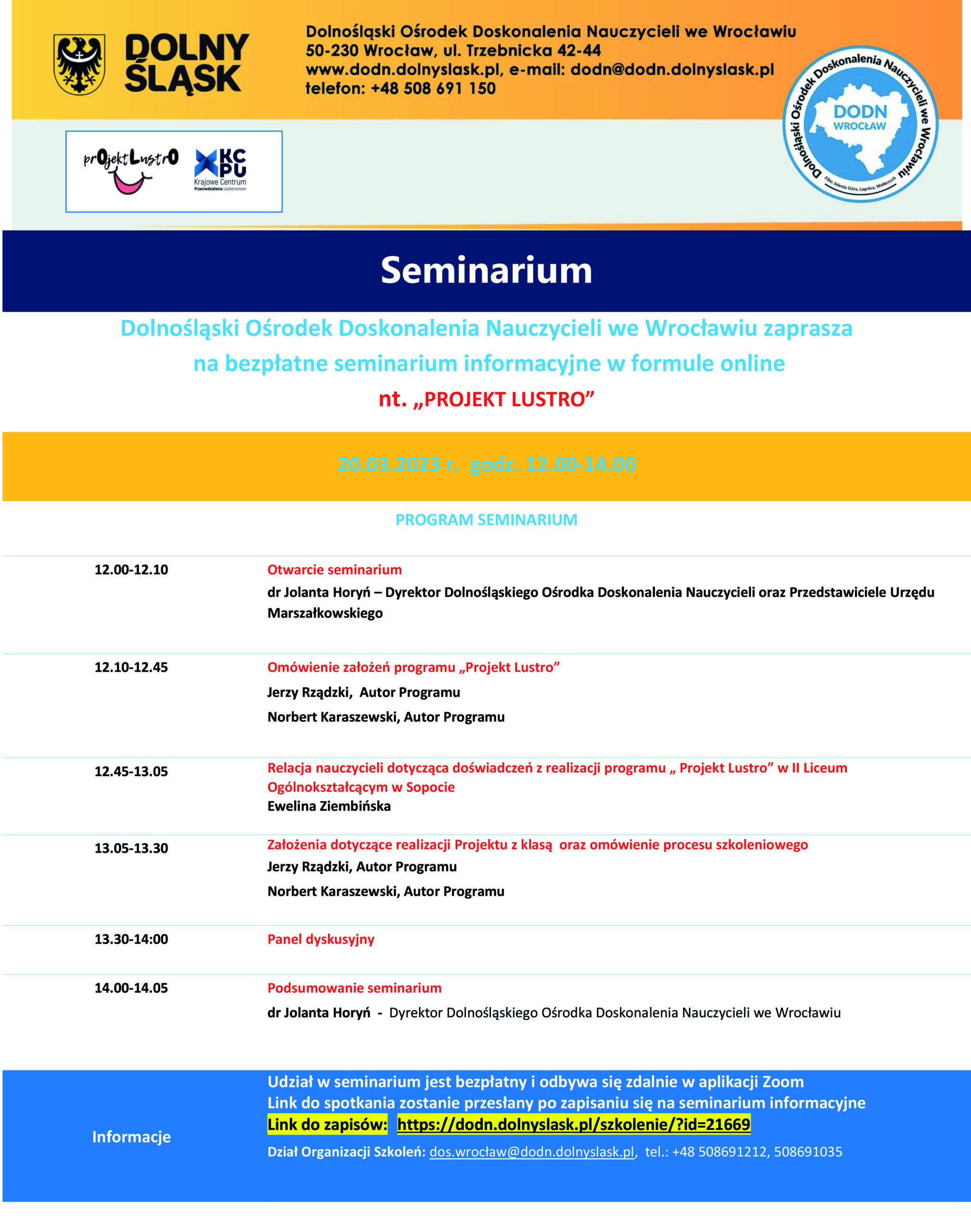Dział Organizacji Szkoleń: dos.wrocław@dodn.dolnyslask.pl, tel.: +48 508691212, 508691035