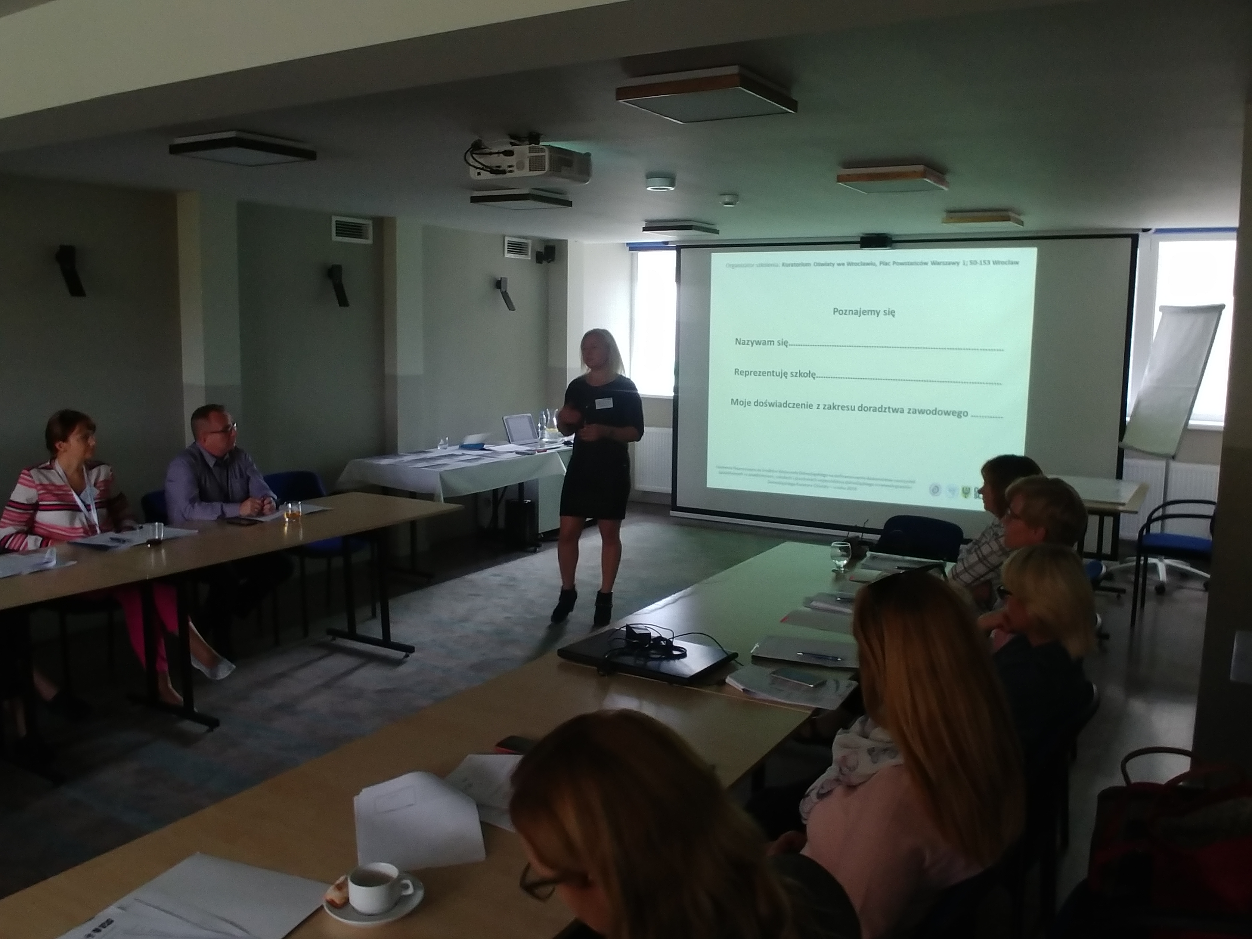 Dwa dni grantu były bardzo intensywne, wypełnione różnymi treściami z zakresu pracy z uczniem zdolnym i doradztwa zawodowego. Pierwszy wykład wygłosiła Halina Nawrotek, Koordynator Zespołu DCWU, na temat Efektywne sposoby wspierania uzdolnień i zainteresowań uczniów oraz szkolnego doradztwa zawodowego – założenia koncepcji Dolnośląskiego Systemu Wspierania Uzdolnień. Przypomniała o długiej tradycji Dolnośląskiej Sieci Szkół Wspierających Uzdolnienia i wyeksponowała wyzwania, jakie stoją przed szkołami w związku z dokonującą się reformą. Ewa Norkowska, Kierownik Zespołu ds. kształcenia zawodowego, w swoim wystąpieniu pn. Rola nauczyciela i rodzica w doradztwie. Aktualne przepisy prawa oświatowego w zakresie doradztwa zawodowego w Polsce bardzo mocno zaakcentowała potrzebę dialogu między środowiskiem rodzinnym i szkolnym uczniów, by wspierać ich w życiowych wyborach, dotyczących kształcenia i wyboru zawodu. Ostatnie wystąpienie Krystyny Pac-Marcinkowskiej i Małgorzaty Reichel pt. Potrzeba doradzania uczniom o zidentyfikowanych zainteresowaniach i uzdolnieniach w wyborze dalszej ścieżki kształcenia oraz przyszłego zawodu było dopełnieniem wcześniej zasygnalizowanych treści, podkreślało rangę doradztwa zawodowego w przygotowywaniu ucznia szczególnie uzdolnionego do funkcjonowania na rynku pracy.
