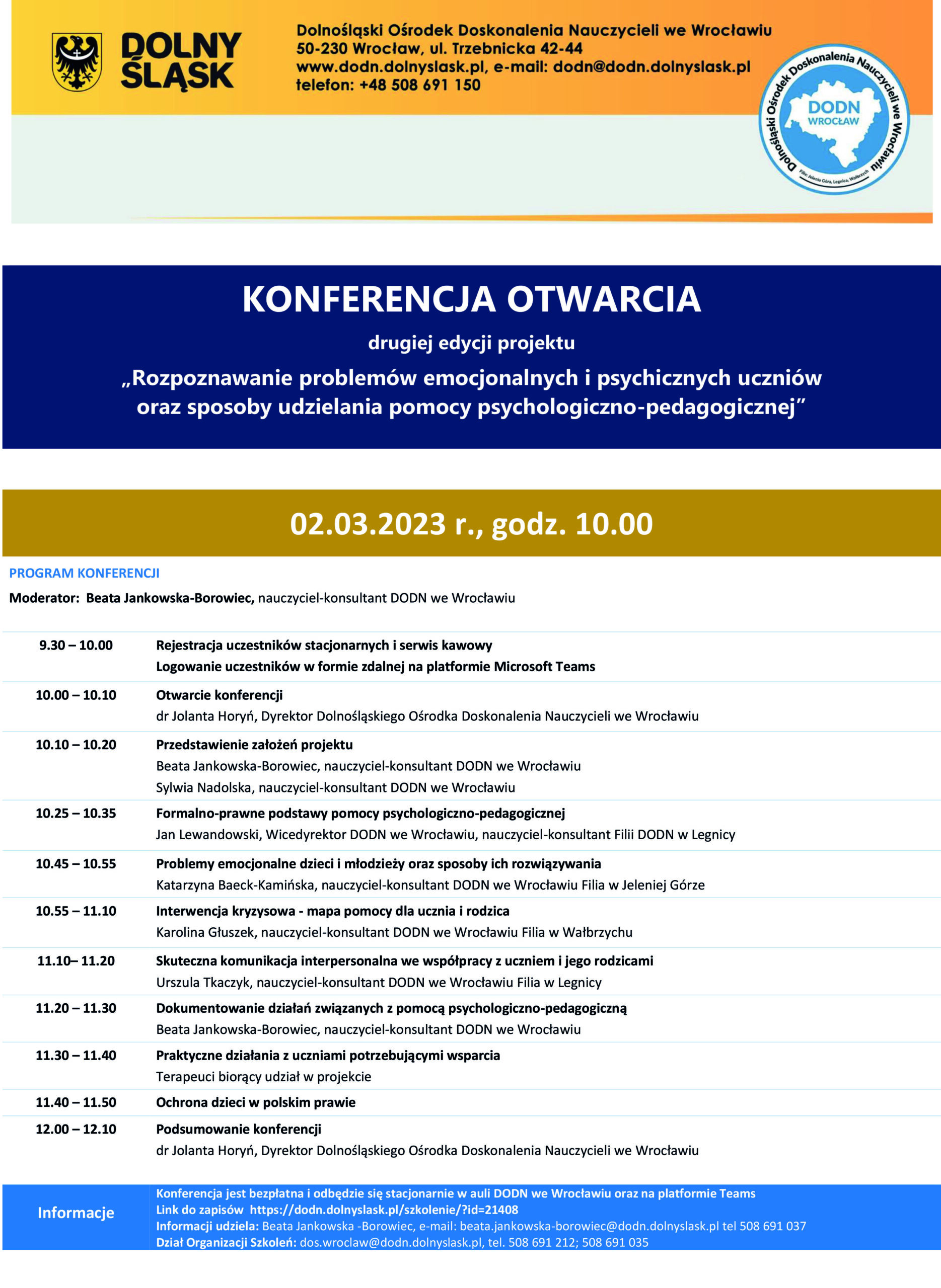 • Koordynator projektu: Beata Jankowska-Borowiec, tel.: +48 508 691 037, e-mail: beata.jankowska-borowiec@dodn.dolnyslask.pl