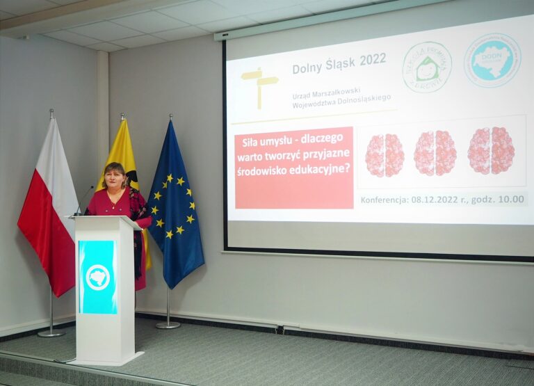 8 grudnia 2022 r. Zespół ds. Promocji Zdrowia zorganizował dla środowiska edukacyjnego IV Wojewódzką konferencję pt. „Siła umysłu – dlaczego warto tworzyć przyjazne środowisko edukacyjne?” Konferencję otworzyła dr Jolanta Horyń, Dyrektor DODN w Wrocławiu, wprowadzając odbiorców w tematykę spotkania.