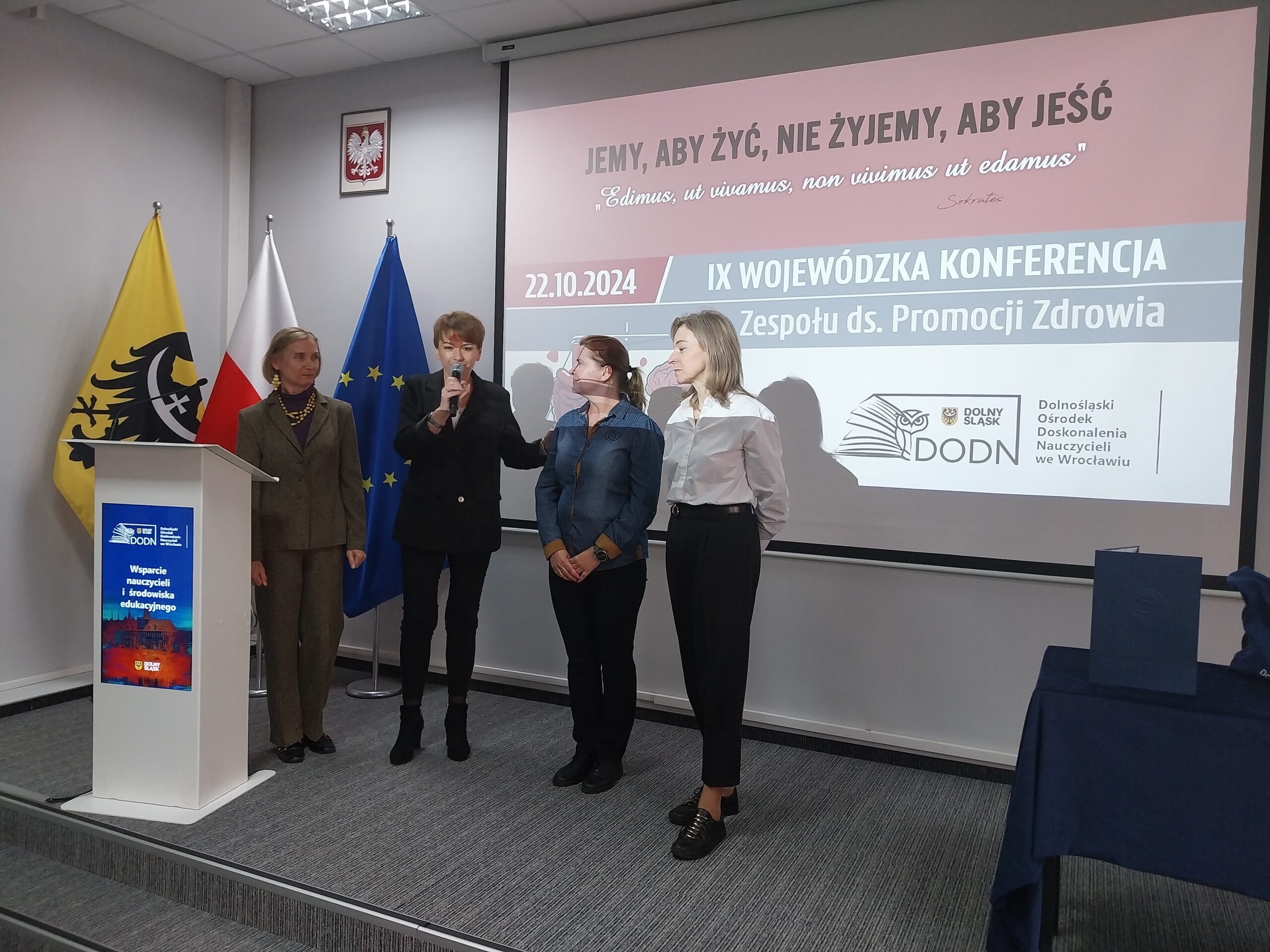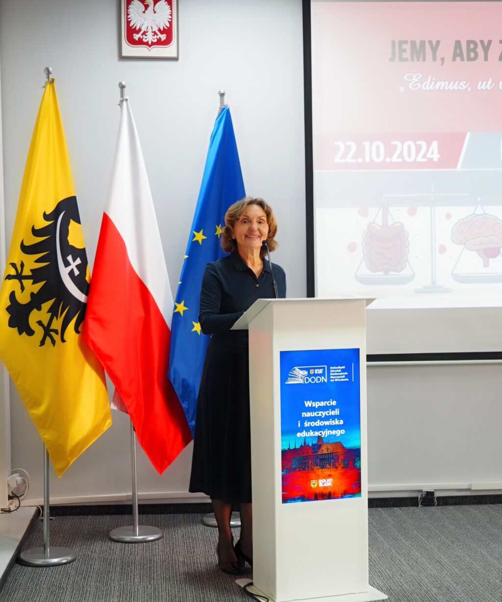 22 października 2024 r. Zespół ds. Promocji Zdrowia zorganizował dla środowiska edukacyjnego IX Wojewódzką Konferencję pt. „Jemy, aby żyć, nie żyjemy, aby jeść”. Konferencję otworzyła Pani dr Katarzyna Pawlak-Weiss, Dyrektor Dolnośląskiego Ośrodka Doskonalenia Nauczycieli we Wrocławiu.