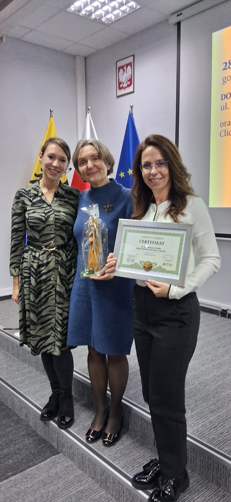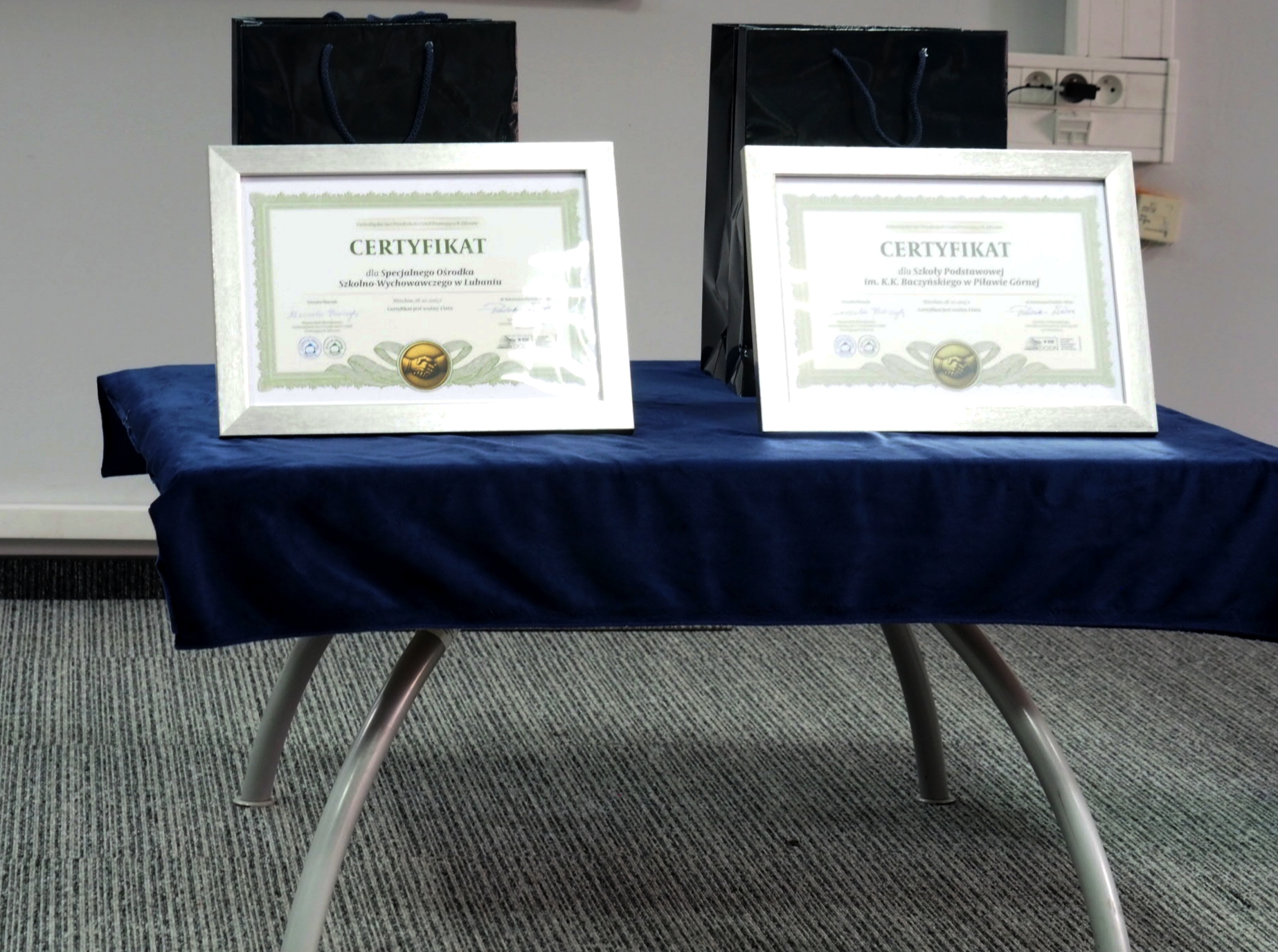 Po prezentacjach nastąpiło uroczyste wręczenie Wojewódzkich Certyfikatów Szkoły Promującej Zdrowie. Otrzymały je: Specjalny Ośrodek Szkolno-Wychowawczy w Lubaniu oraz Szkoła Podstawowa im. K.K. Baczyńskiego w Piławie Górnej. Certyfikaty w imieniu DODN wręczył dr Dariusz Wędzina wraz z koordynatorami wojewódzkimi i regionalnymi Sieci Szkół Promujących Zdrowie: Urszulą Tkaczyk, Sylwią Nadolską i Karoliną Głuszek. Gratulacje przekazano dyrektorom wyróżnionych placówek oraz szkolnym koordynatorom.