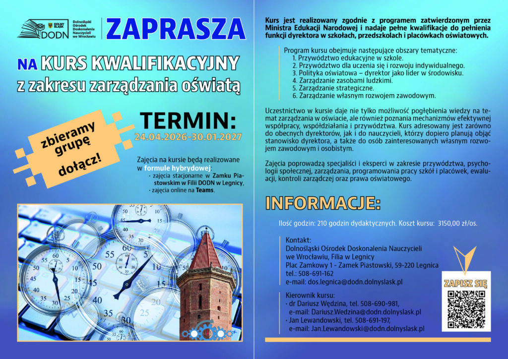 Link do zapisów: https://dodn.dolnyslask.pl/szkolenie/kurs-kwalifikacyjny-z-zakresu-zarzadzania-oswiata/