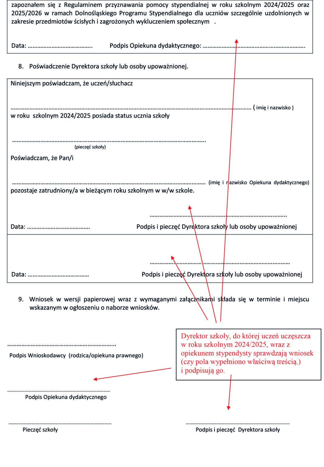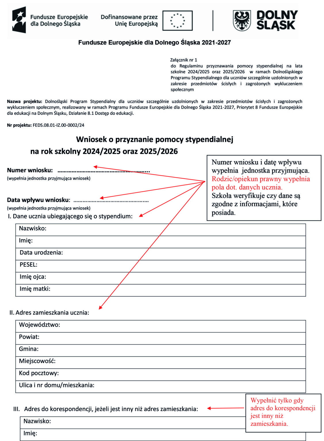 Aby ubiegać się o zwrot należy pobrać jeden z poniższych załączników, wypełnić i złożyć do Dolnośląskiego Ośrodka Doskonalenia Nauczycieli we Wrocławiu, ul. Trzebnicka 42-44, 50-230 Wrocław z dopiskiem „Dolnośląski Program Stypendialny dla uczniów szczególnie uzdolnionych w zakresie przedmiotów ścisłych i zagrożonych wykluczeniem społecznym” (można wysłać listem poleconym/kurierem).