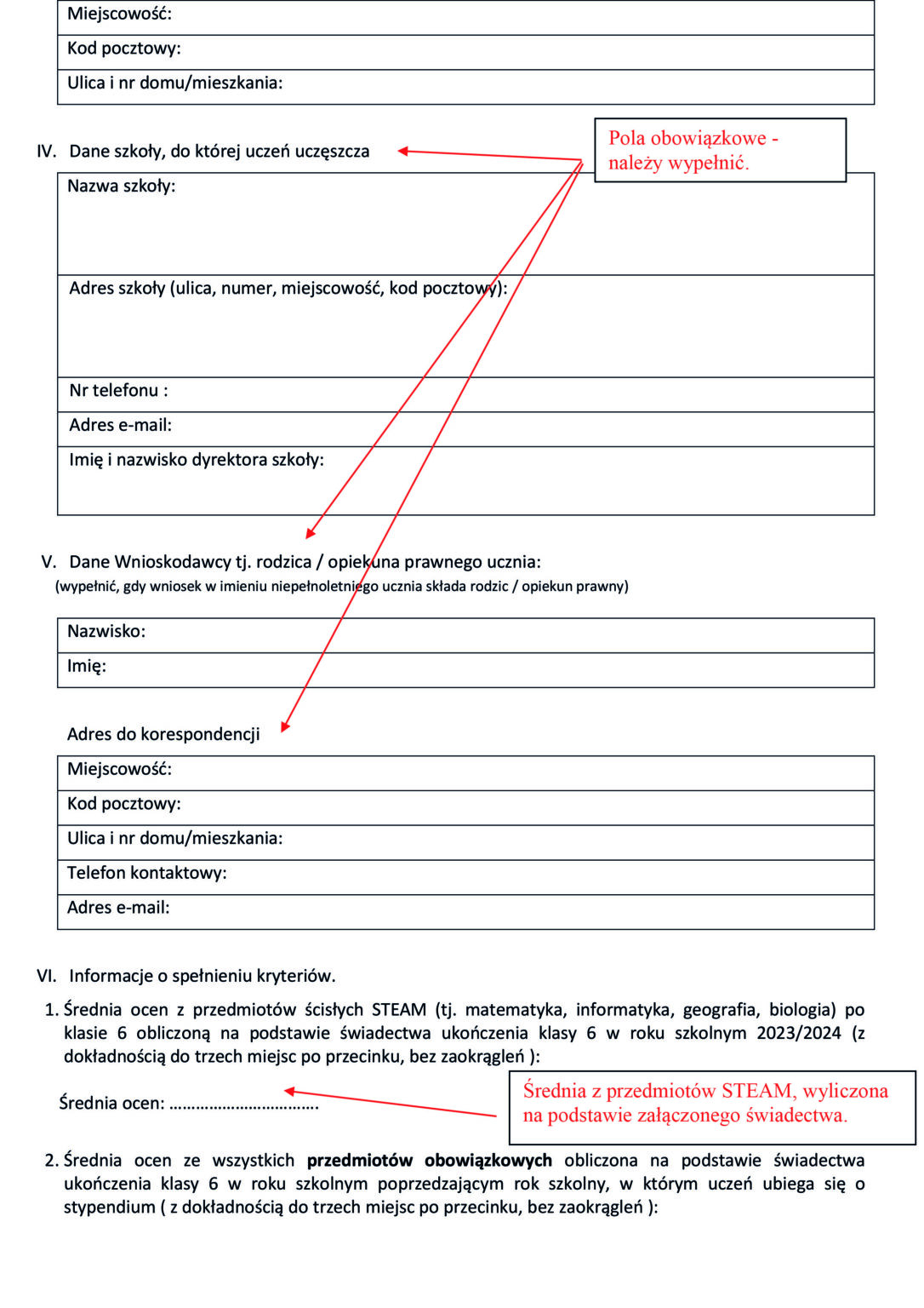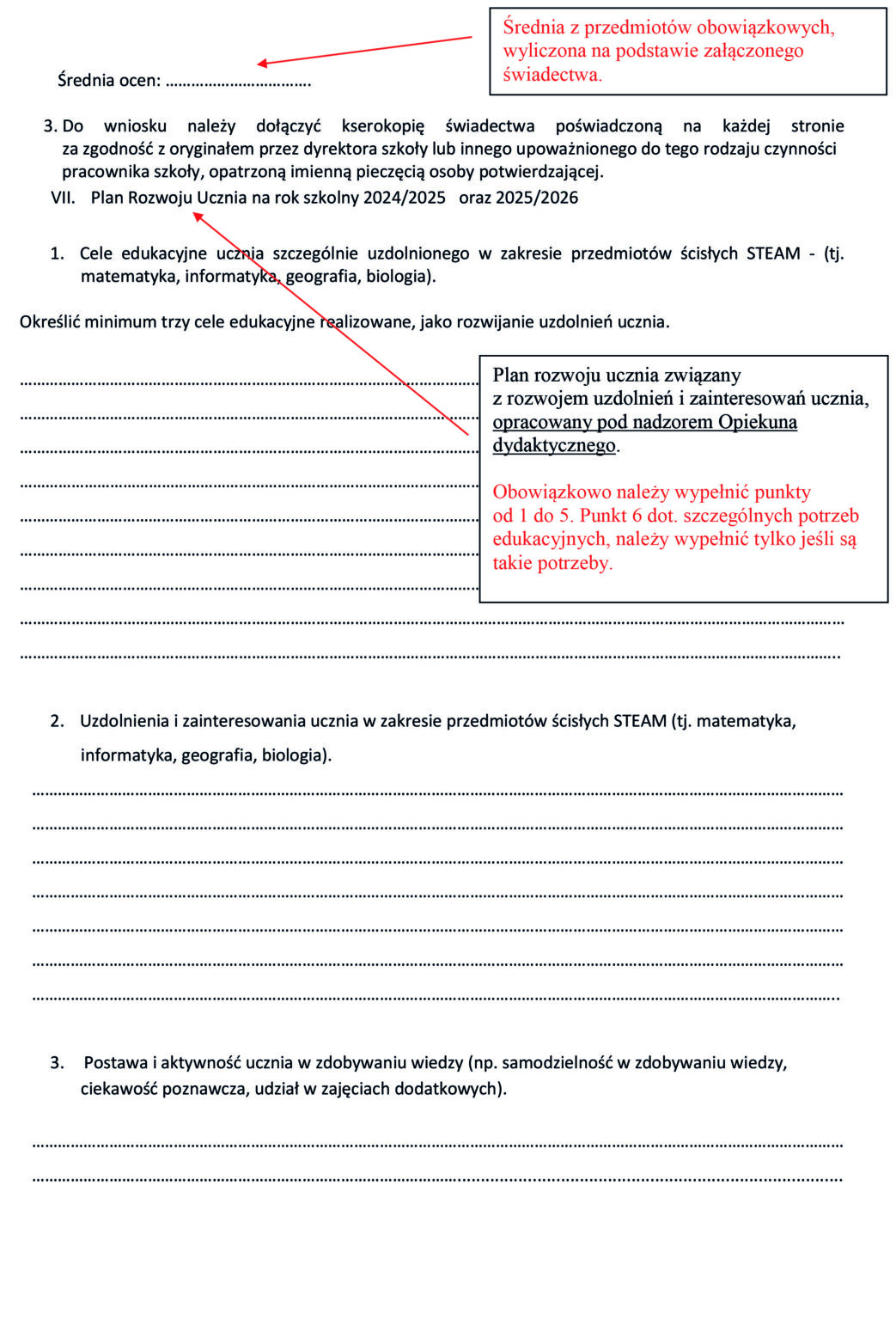 2) uzyskali średnią ocen z przedmiotów ścisłych STEAM (tj. matematyka, informatyka, geografia, biologia) po klasie 6 obliczoną na podstawie świadectwa ukończenia klasy 6 w roku szkolnym 2023/2024 na poziomie nie niższym niż 4,50 obliczoną z dokładnością do trzech miejsc po przecinku bez zaokrągleń;