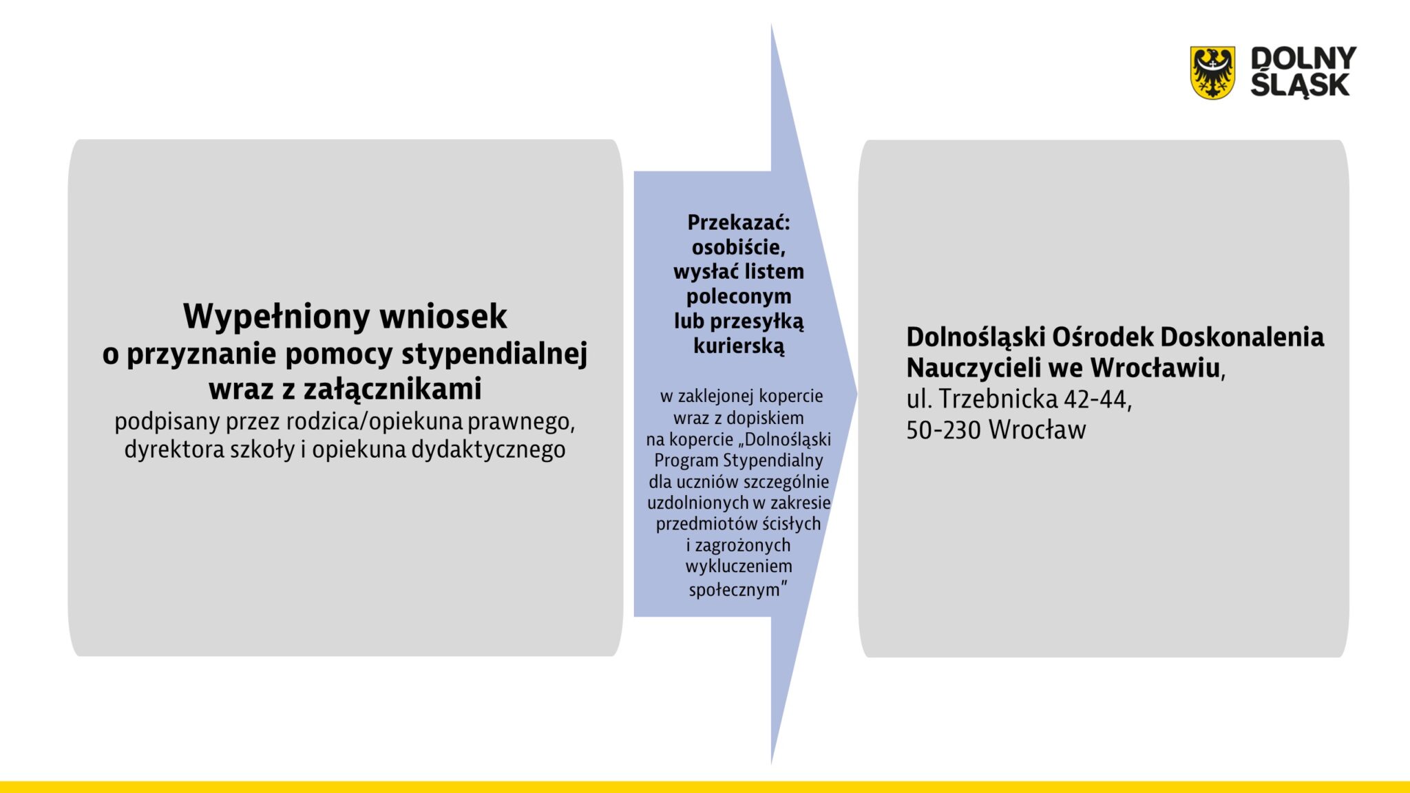 Aby ubiegać się o zwrot należy pobrać jeden z poniższych załączników, wypełnić i złożyć do Dolnośląskiego Ośrodka Doskonalenia Nauczycieli we Wrocławiu, ul. Trzebnicka 42-44, 50-230 Wrocław z dopiskiem „Dolnośląski Program Stypendialny dla uczniów szczególnie uzdolnionych w zakresie przedmiotów ścisłych i zagrożonych wykluczeniem społecznym” (można wysłać listem poleconym/kurierem).