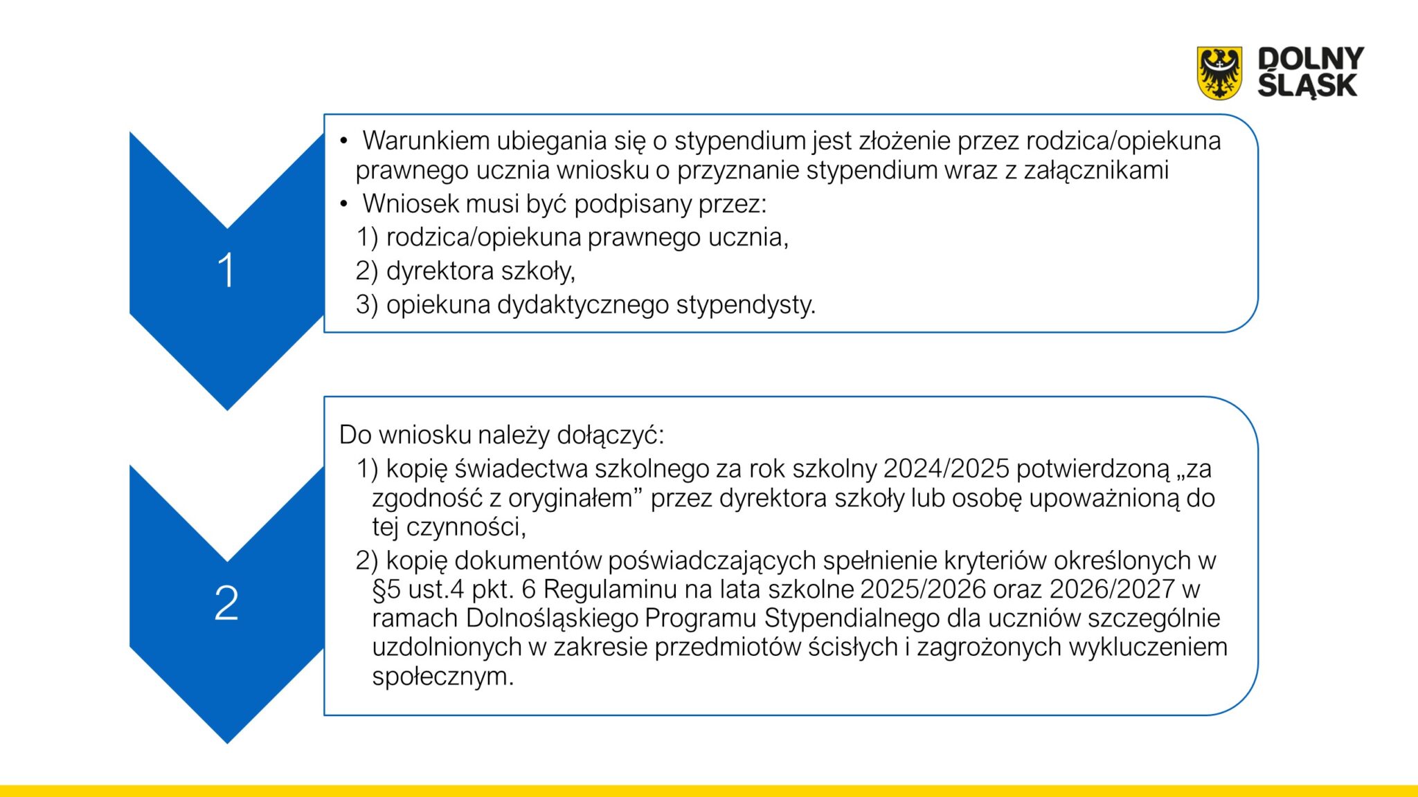 „W dniu 22 lipca 2025 r. Zarząd Województwa Dolnośląskiego podjął uchwałę nr 2565/VII/25 dotyczącą terminu naboru wniosków o przyznanie pomocy stypendialnej na lata szkolne 2025/2026 oraz 2026/2027 w ramach Dolnośląskiego Programu Stypendialnego dla uczniów szczególnie uzdolnionych w zakresie przedmiotów ścisłych i zagrożonych wykluczeniem społecznym”