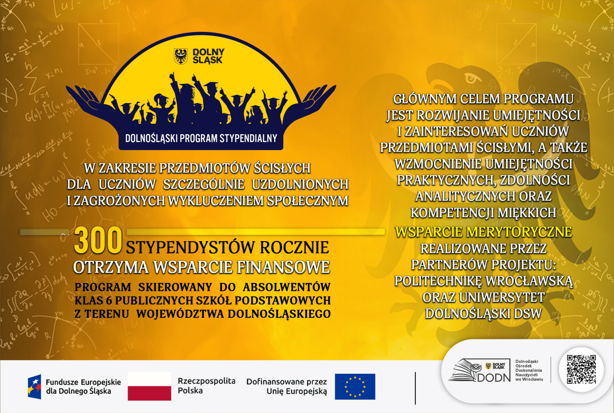 w ramach Dolnośląskiego Programu Stypendialnego dla uczniów szczególnie uzdolnionych w zakresie przedmiotów ścisłych i zagrożonych wykluczeniem społecznym,