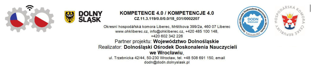 Projekt Kompetencje 4.0 jest realizowany we współpracy z partnerem czeskim. Partnerem wiodącym jest Okręgowa Izba Handlowa z Liberca w Republice Czeskiej. Nawiązuje on do realizowanego już wspólnie projektu Firemki, który wykazał konieczność wzmacniania kompetencji z zakresu przedsiębiorczości o aspekty wynikające z wdrażania koncepcji Przemysłu 4.0, ze szczególnym uwzględnieniem potrzeb rynku pracy na pograniczu czesko-polskim.