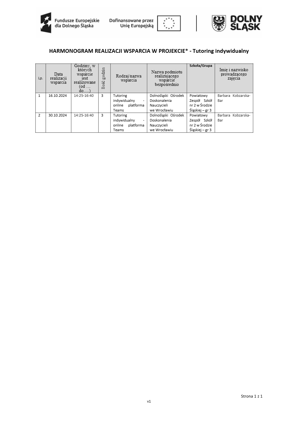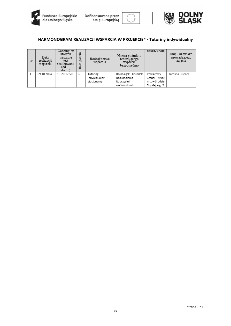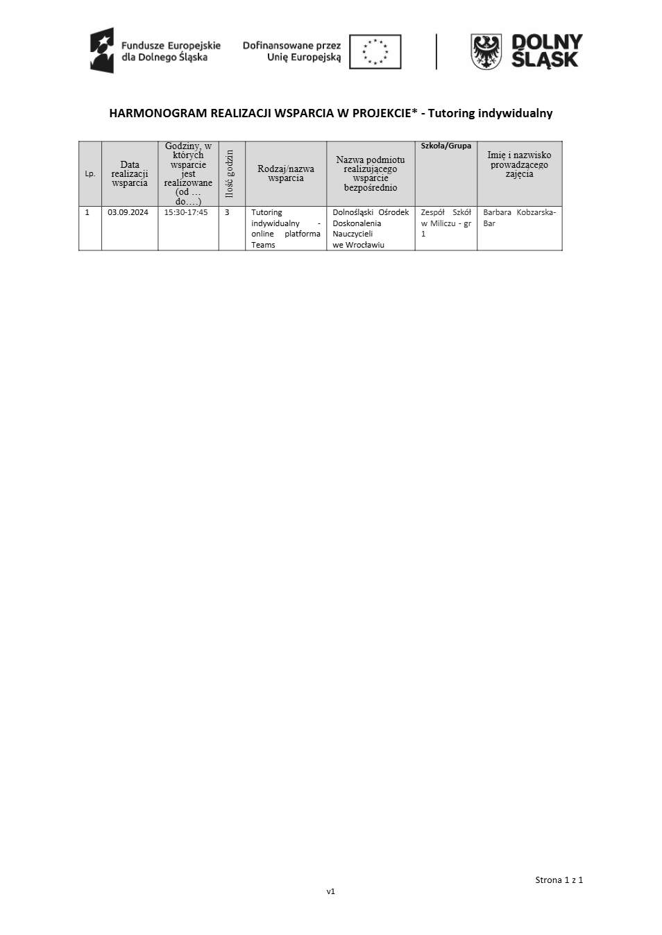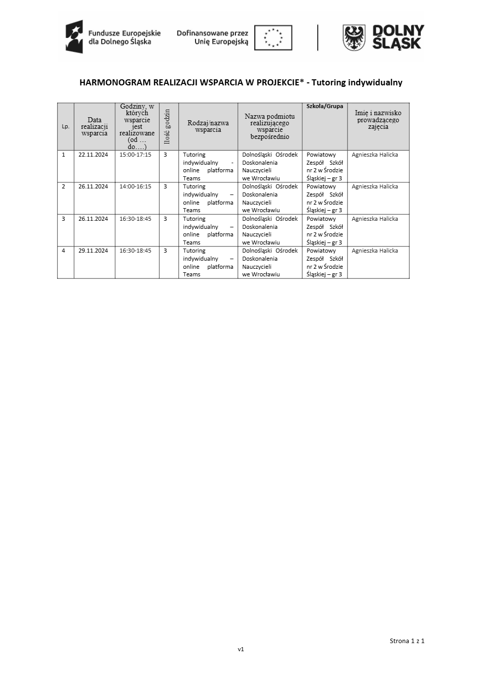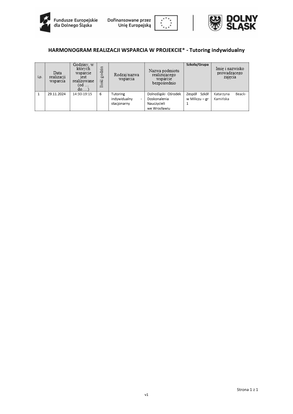Projekt „Inteligentni Zawodowcy” realizowany w ramach Priorytetu 8 „Fundusze Europejskie dla edukacji na Dolnym Śląsku”; Działania nr FEDS.08.01 „Dostęp do edukacji”, Programu Fundusze Europejskie dla Dolnego Śląska 2021-2027 współfinansowanego ze środków Europejskiego Funduszu Społecznego Plus.