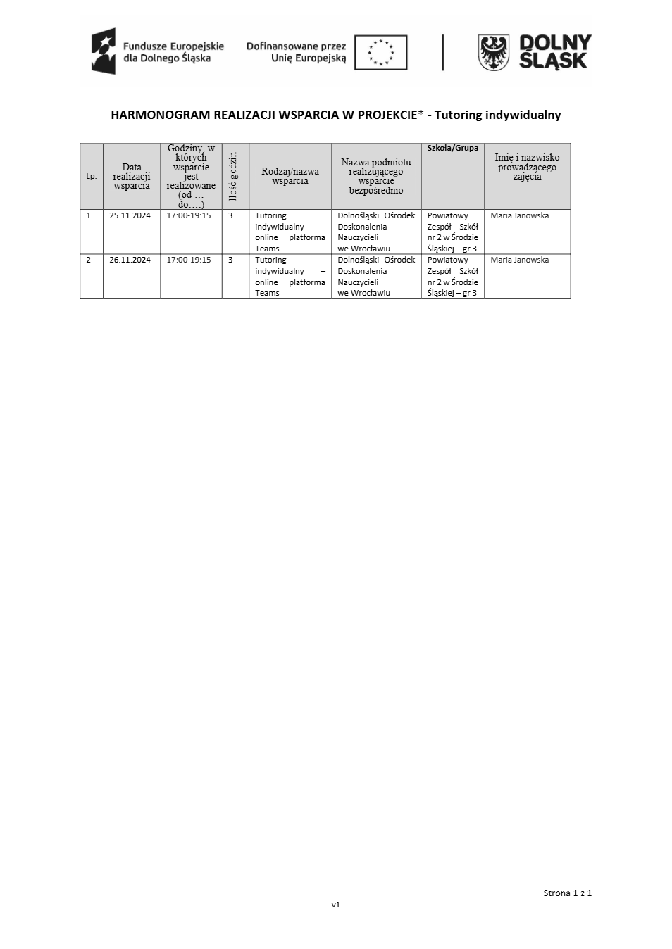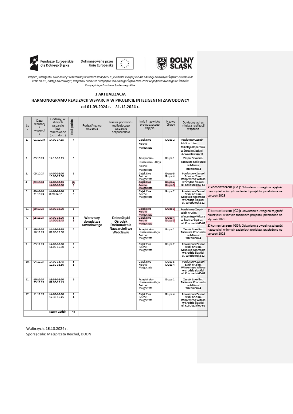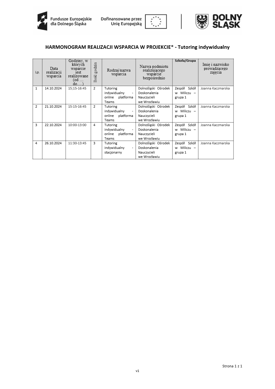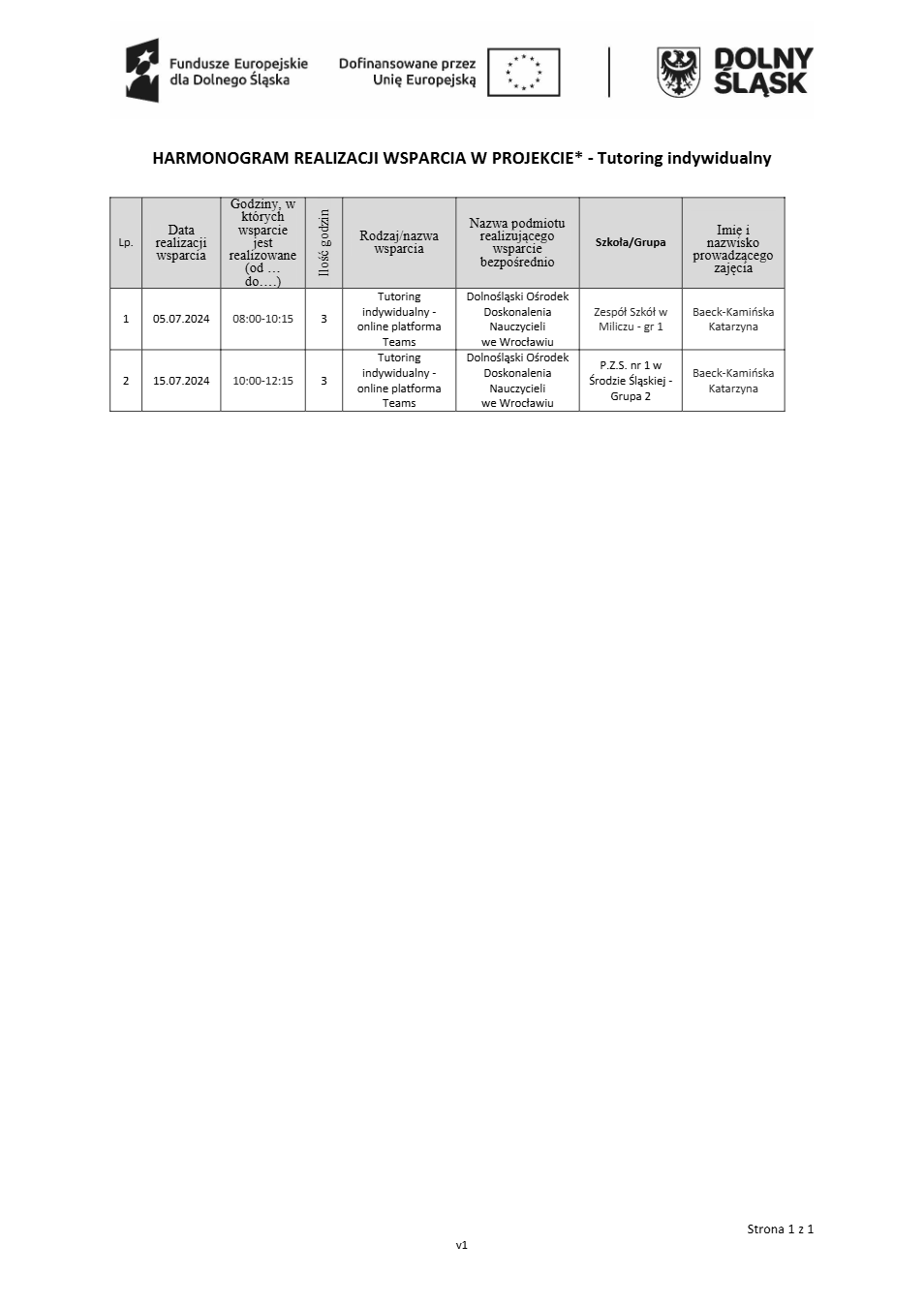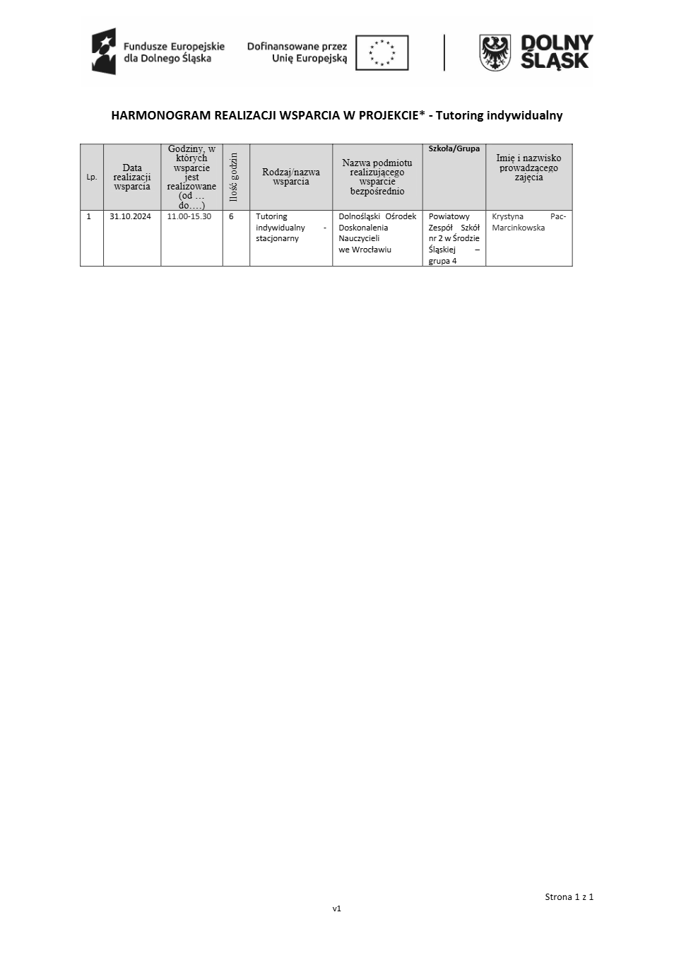 Projekt „Inteligentni Zawodowcy” realizowany w ramach Priorytetu 8 „Fundusze Europejskie dla edukacji na Dolnym Śląsku”; Działania nr FEDS.08.01 „Dostęp do edukacji”, Programu Fundusze Europejskie dla Dolnego Śląska 2021-2027 współfinansowanego ze środków Europejskiego Funduszu Społecznego Plus.
