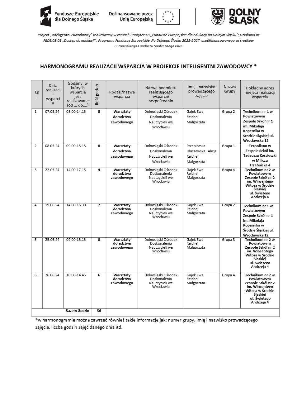 Projekt „Inteligentni Zawodowcy” realizowany w ramach Priorytetu 8 „Fundusze Europejskie dla edukacji na Dolnym Śląsku”; Działania nr FEDS.08.01 „Dostęp do edukacji”, Programu Fundusze Europejskie dla Dolnego Śląska 2021-2027 współfinansowanego ze środków Europejskiego Funduszu Społecznego Plus.