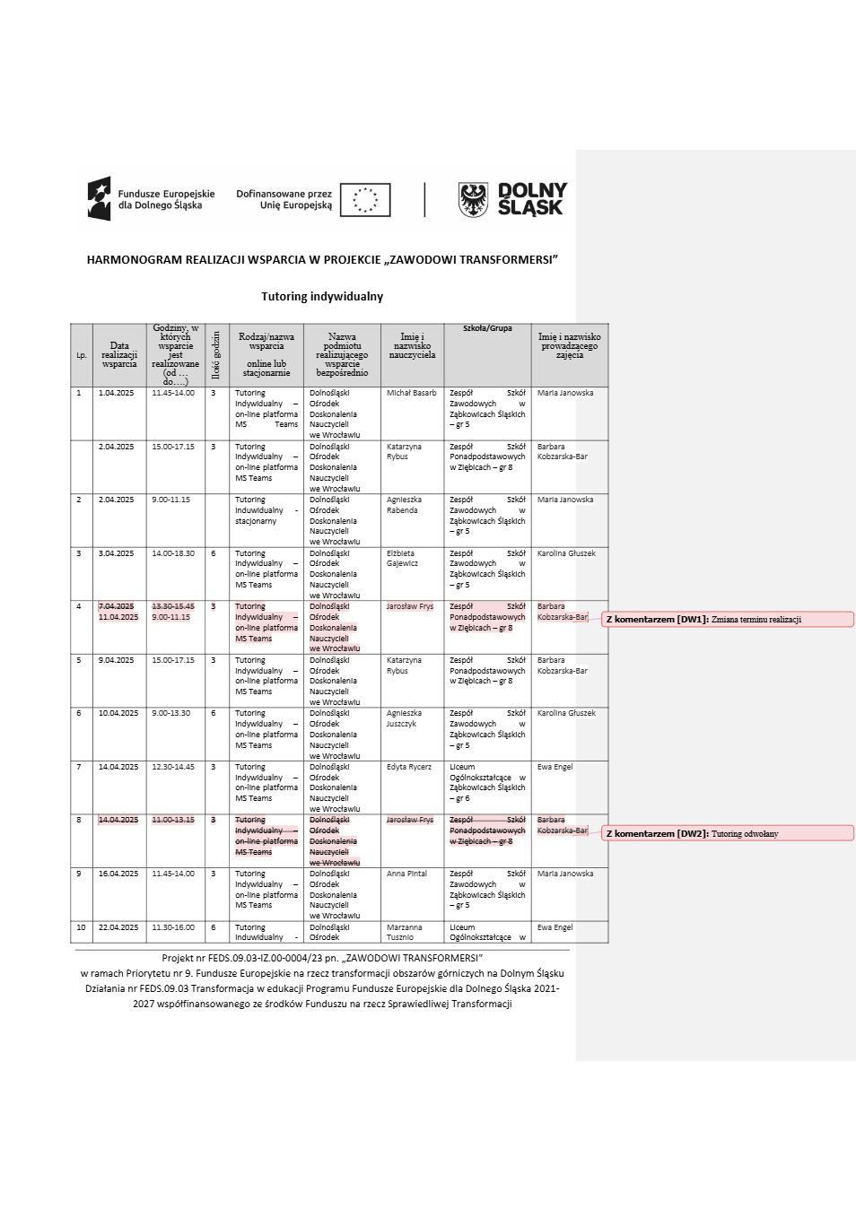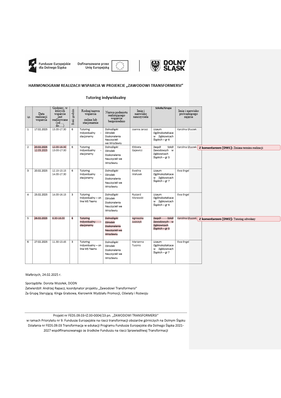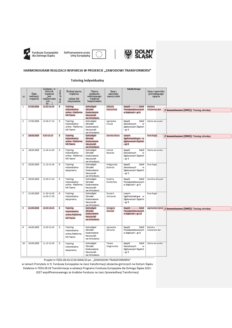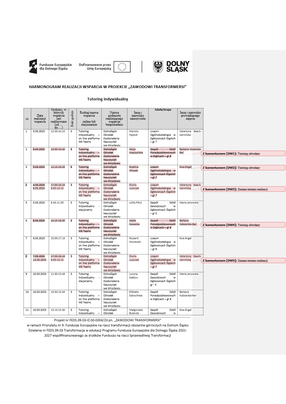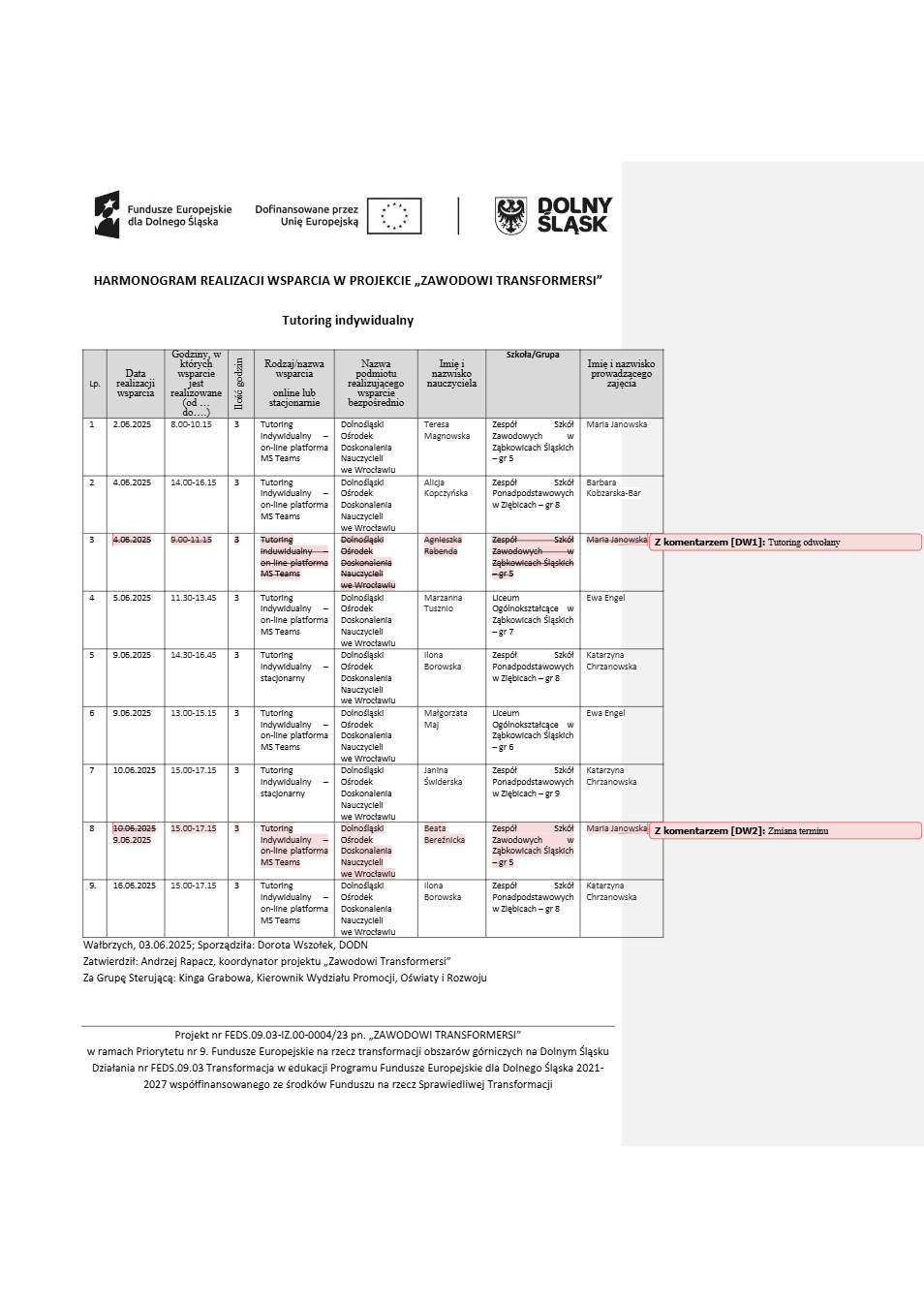 Projekt Zawodowi transformersi realizowany w ramach Priorytetu 9 „Fundusze Europejskie na rzecz transformacji obszarów górniczych na Dolnym Śląsku”, Działanie FEDS.09.03 Transformacja w edukacji, Programu Fundusze Europejskie dla Dolnego Śląska 2021 – 2027 spółfinansowanego ze środków Funduszu na rzecz Sprawiedliwej Transformacji.