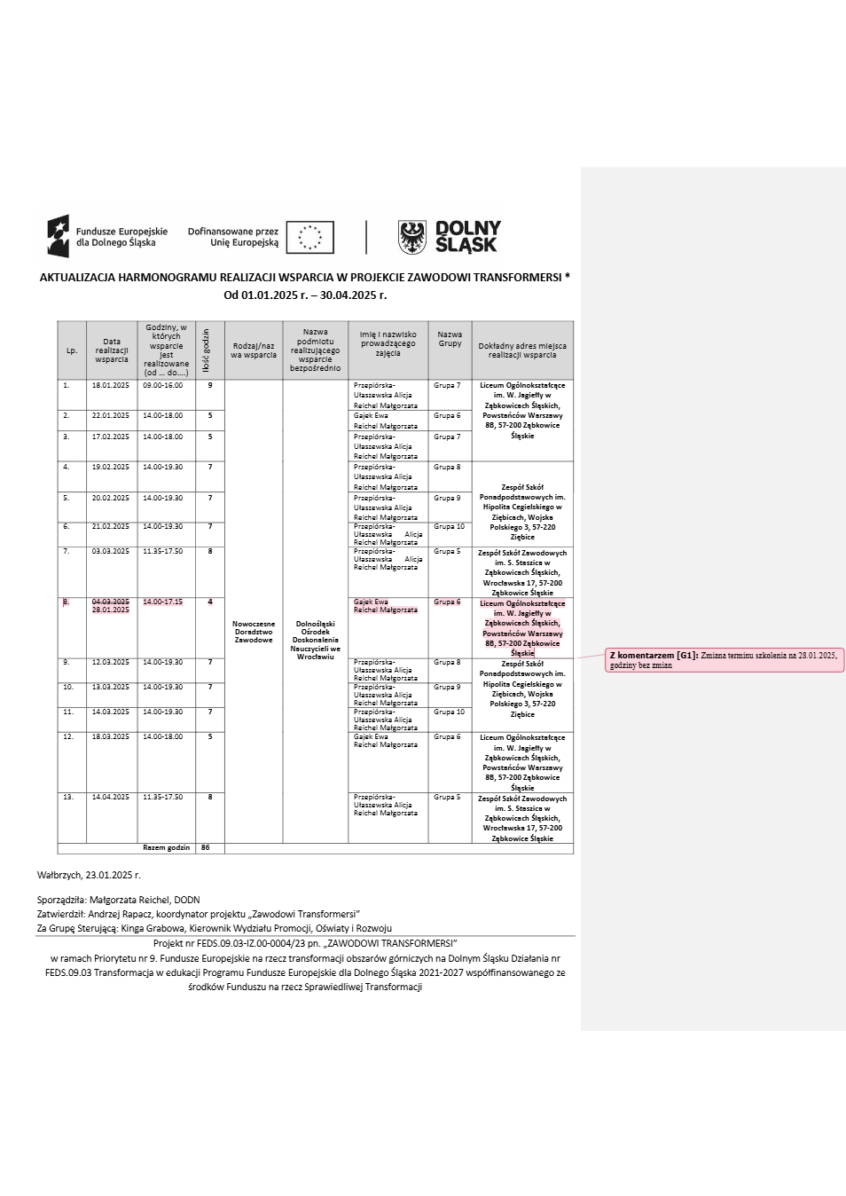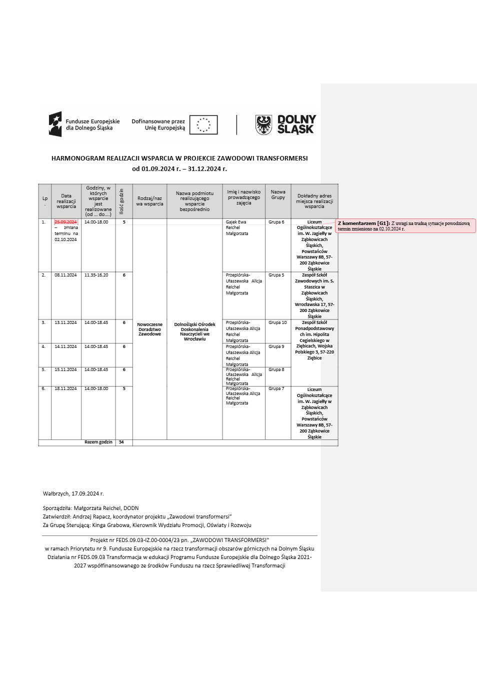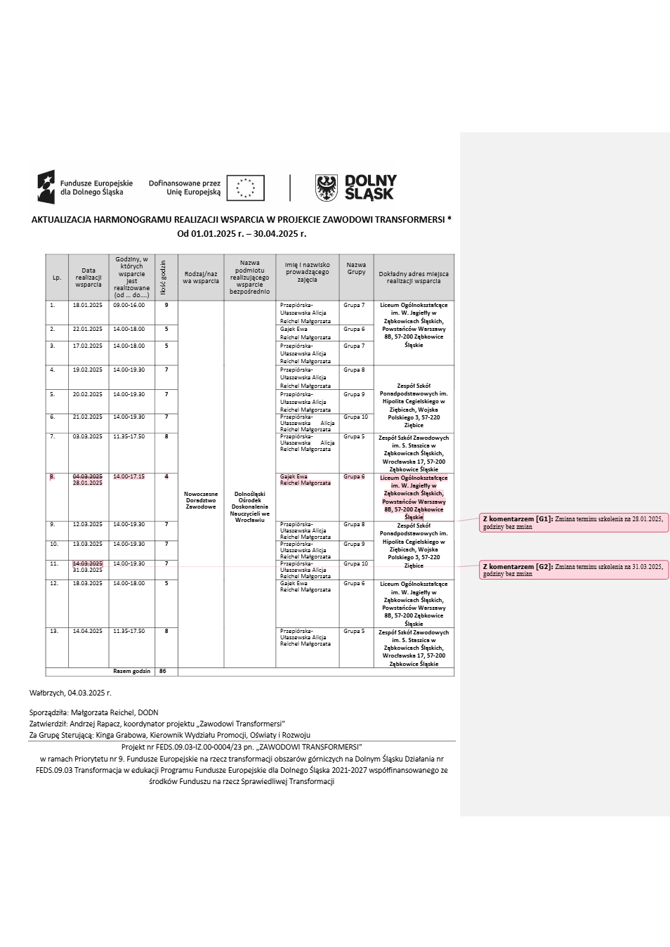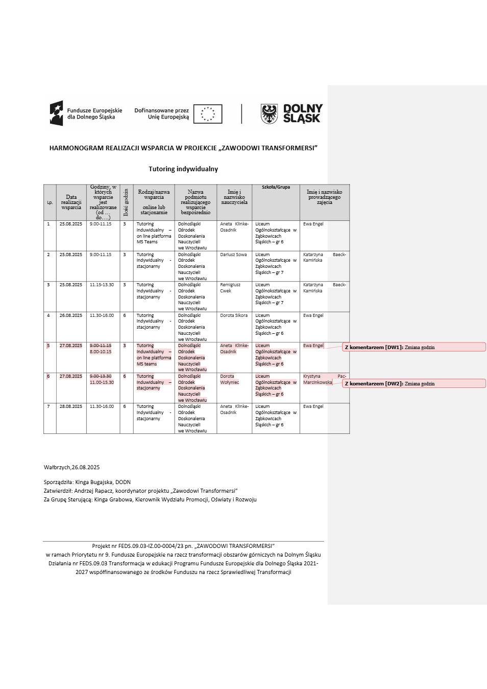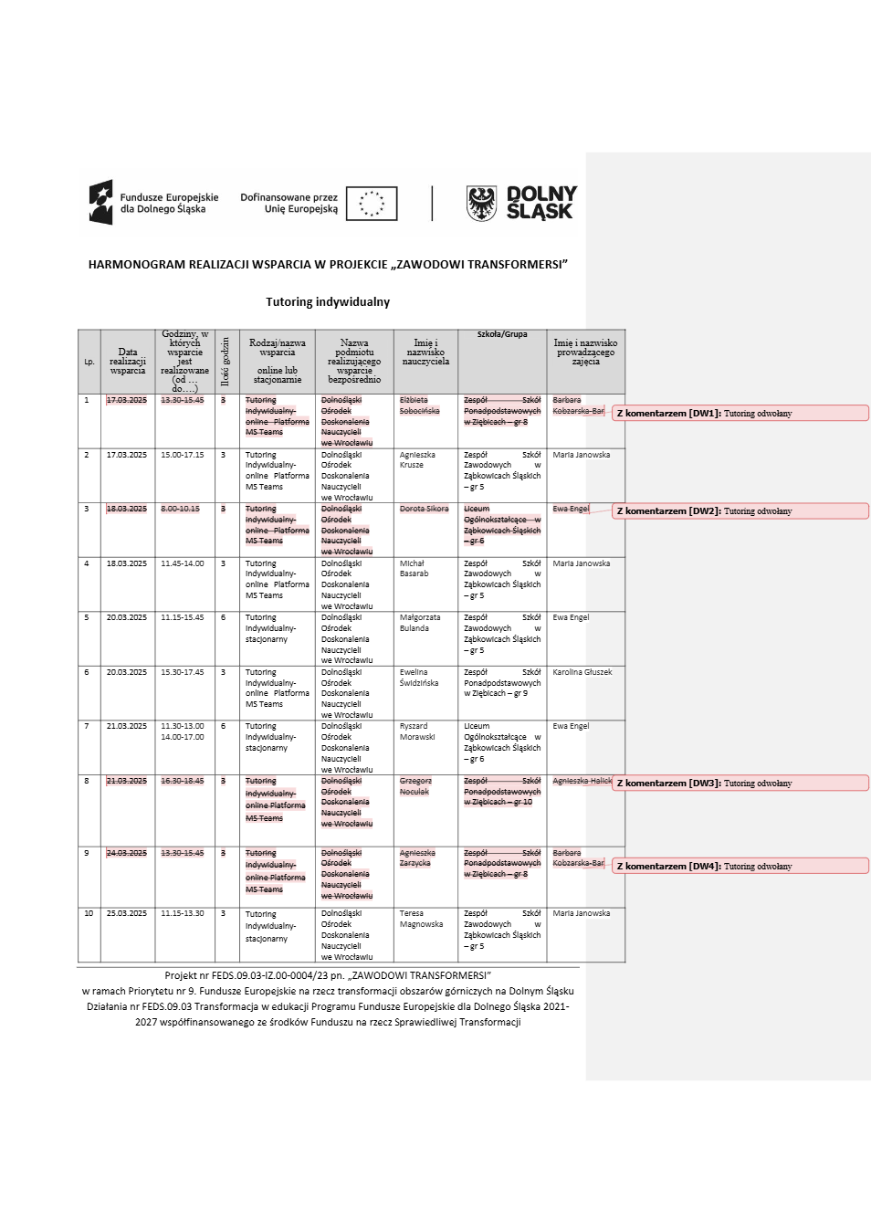 Projekt Zawodowi transformersi realizowany w ramach Priorytetu 9 „Fundusze Europejskie na rzecz transformacji obszarów górniczych na Dolnym Śląsku”, Działanie FEDS.09.03 Transformacja w edukacji, Programu Fundusze Europejskie dla Dolnego Śląska 2021 – 2027 spółfinansowanego ze środków Funduszu na rzecz Sprawiedliwej Transformacji.