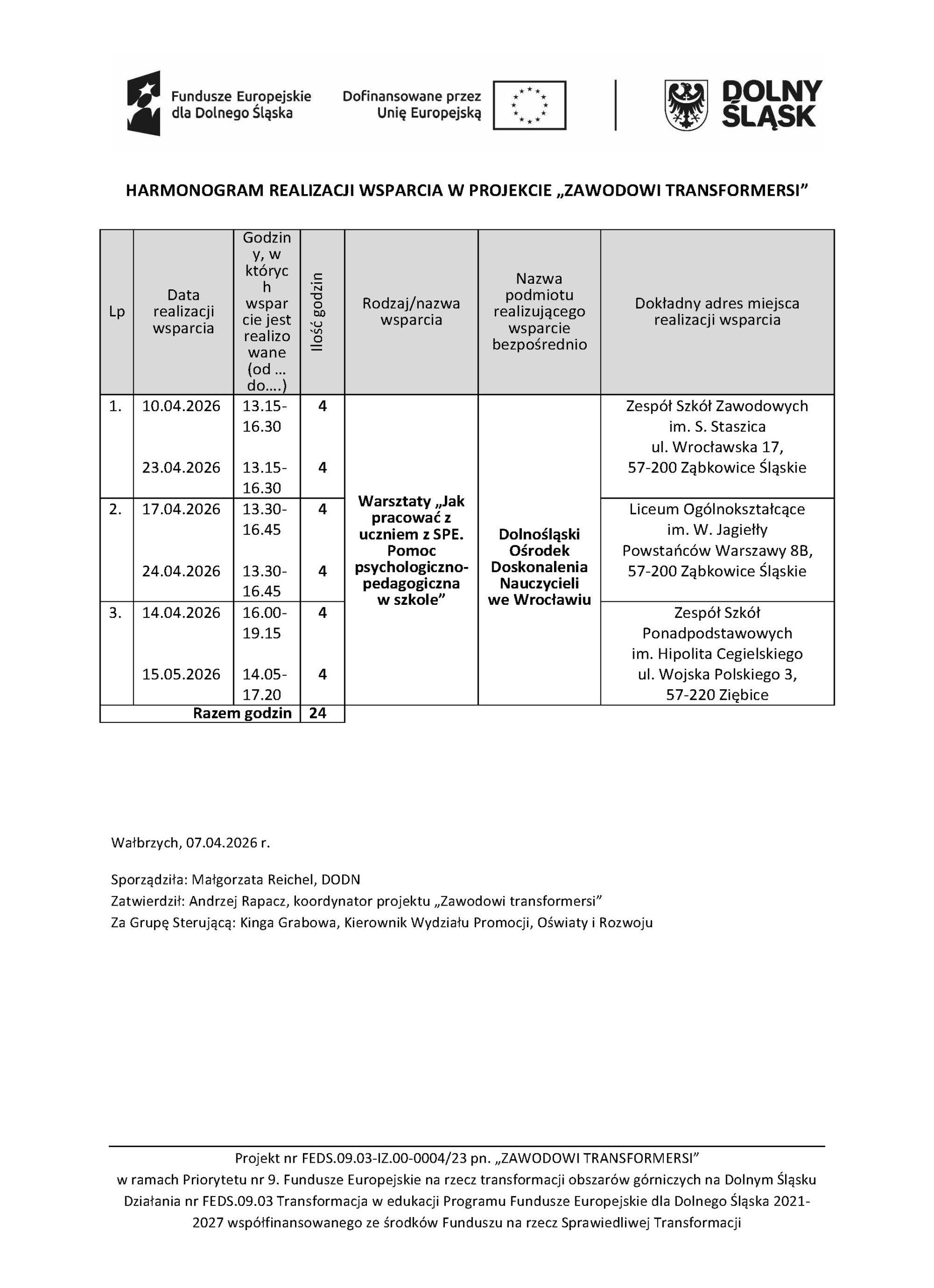 Projekt Zawodowi transformersi realizowany w ramach Priorytetu 9 „Fundusze Europejskie na rzecz transformacji obszarów górniczych na Dolnym Śląsku”, Działanie FEDS.09.03 Transformacja w edukacji, Programu Fundusze Europejskie dla Dolnego Śląska 2021 – 2027 spółfinansowanego ze środków Funduszu na rzecz Sprawiedliwej Transformacji.