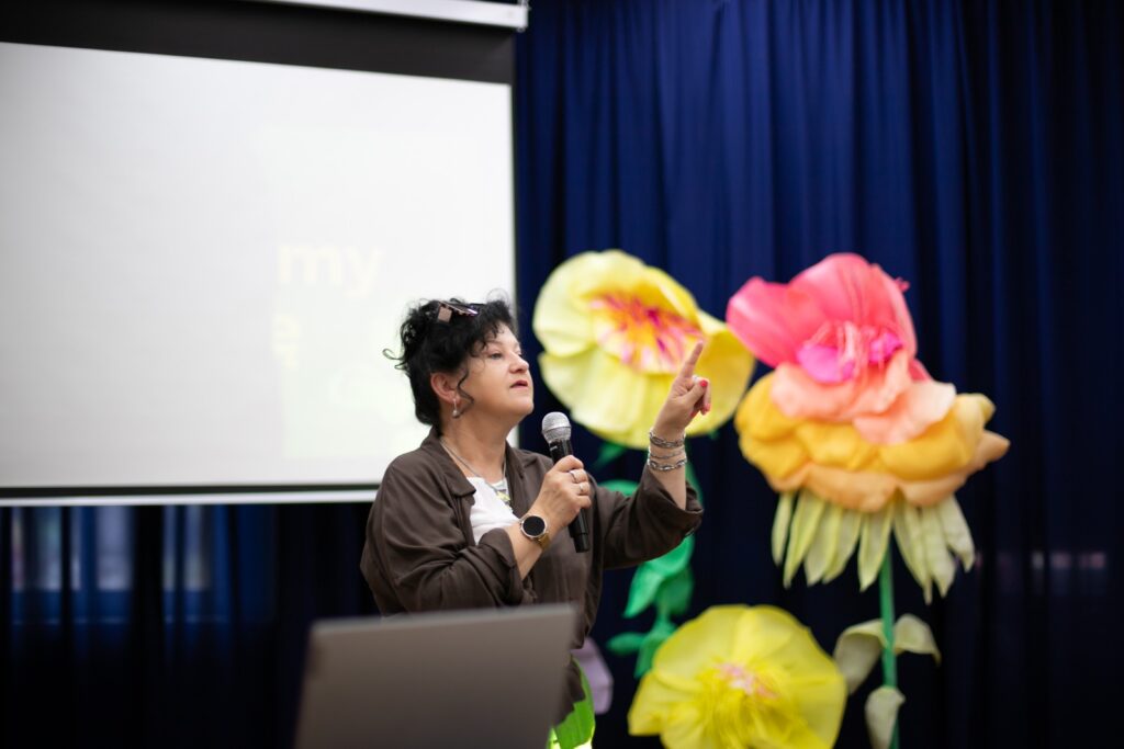 Dyrektor szkoły, p. Dorota Rasała-Świtoń, przedstawiła wyniki autoewaluacji działań realizowanych w ramach Programu Szkoła Promująca Zdrowie – procesu, który umożliwia stałe doskonalenie podejmowanych inicjatyw w obszarze wspierania zdrowia uczniów, nauczycieli i całej społeczności szkolnej. W swoim wystąpieniu podkreśliła, że nasza szkoła uczestniczy w programie już od 30 lat, ponieważ wierzymy, że edukacja to nie tylko przekazywanie wiedzy, ale również troska o dobrostan fizyczny, psychiczny i społeczny.