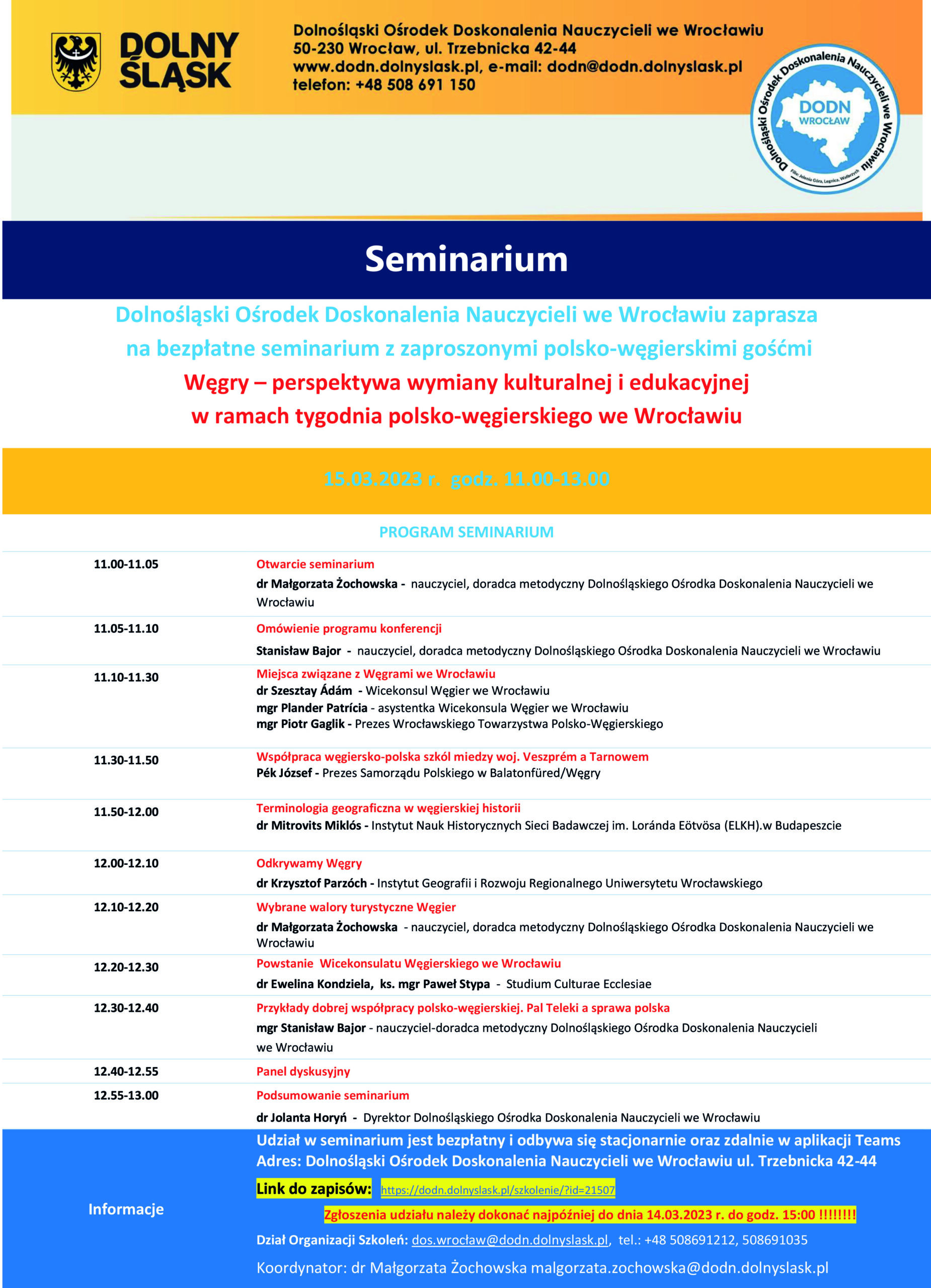 Adres: Dolnośląski Ośrodek Doskonalenia Nauczycieli we Wrocławiu ul. Trzebnicka 42-44
