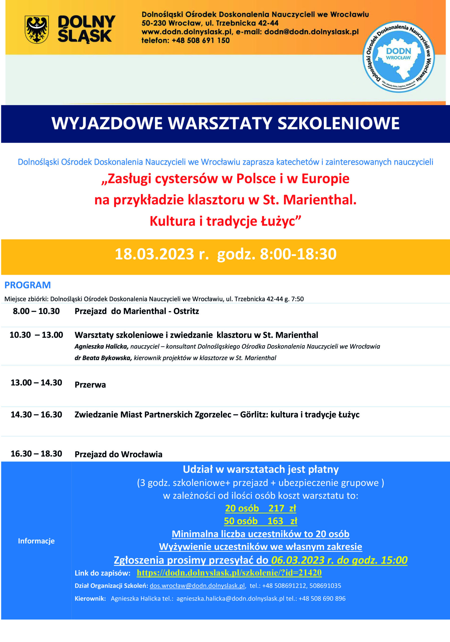 Dział Organizacji Szkoleń: dos.wrocław@dodn.dolnyslask.pl, tel.: +48 508691212, 508691035