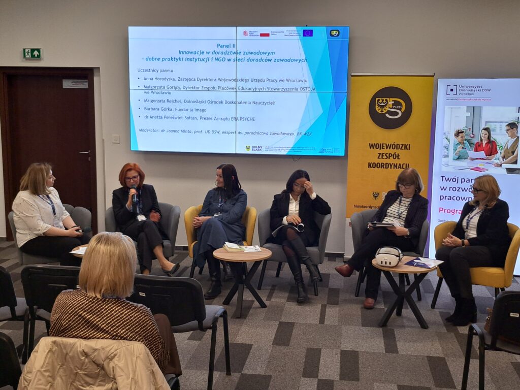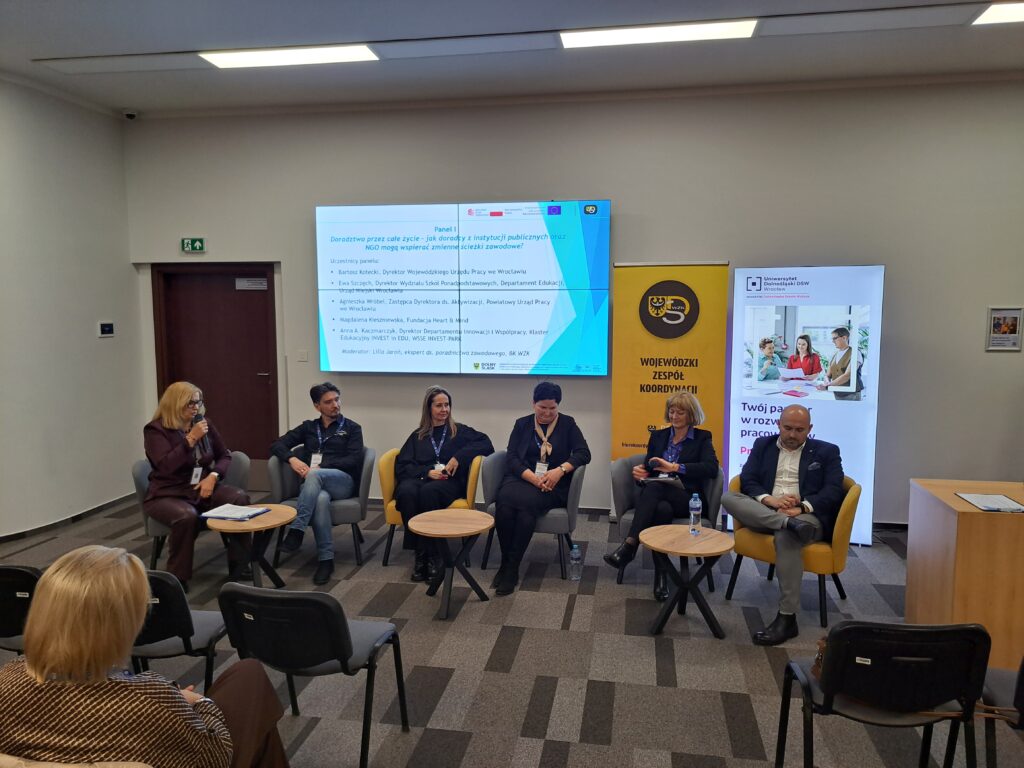 I Dolnośląska Konferencja Doradców Zawodowych (1.12.2025, Wrocław) była poświęcona budowie holistycznego systemu poradnictwa edukacyjno-zawodowego w regionie, odpowiadającego na wyzwania polityki rozwoju umiejętności i całożyciowego poradnictwa (LLG). Istotnym elementem wydarzenia był aktywny udział organizacji pozarządowych, które, obok instytucji publicznych i środowiska akademickiego, współtworzyły debatę na temat jakości i dostępności usług doradczych. Dyskusje panelowe i warsztatowe jednoznacznie wskazały na potrzebę systemowej, międzysektorowej współpracy z NGO jako partnerami uzupełniającymi ofertę poradnictwa, zwłaszcza w pracy z grupami o zróżnicowanych i złożonych potrzebach. Konferencja zaowocowała rekomendacjami dotyczącymi m.in. trwałego włączenia III sektora w regionalny model holistycznego doradztwa zawodowego i poradnictwa karier.