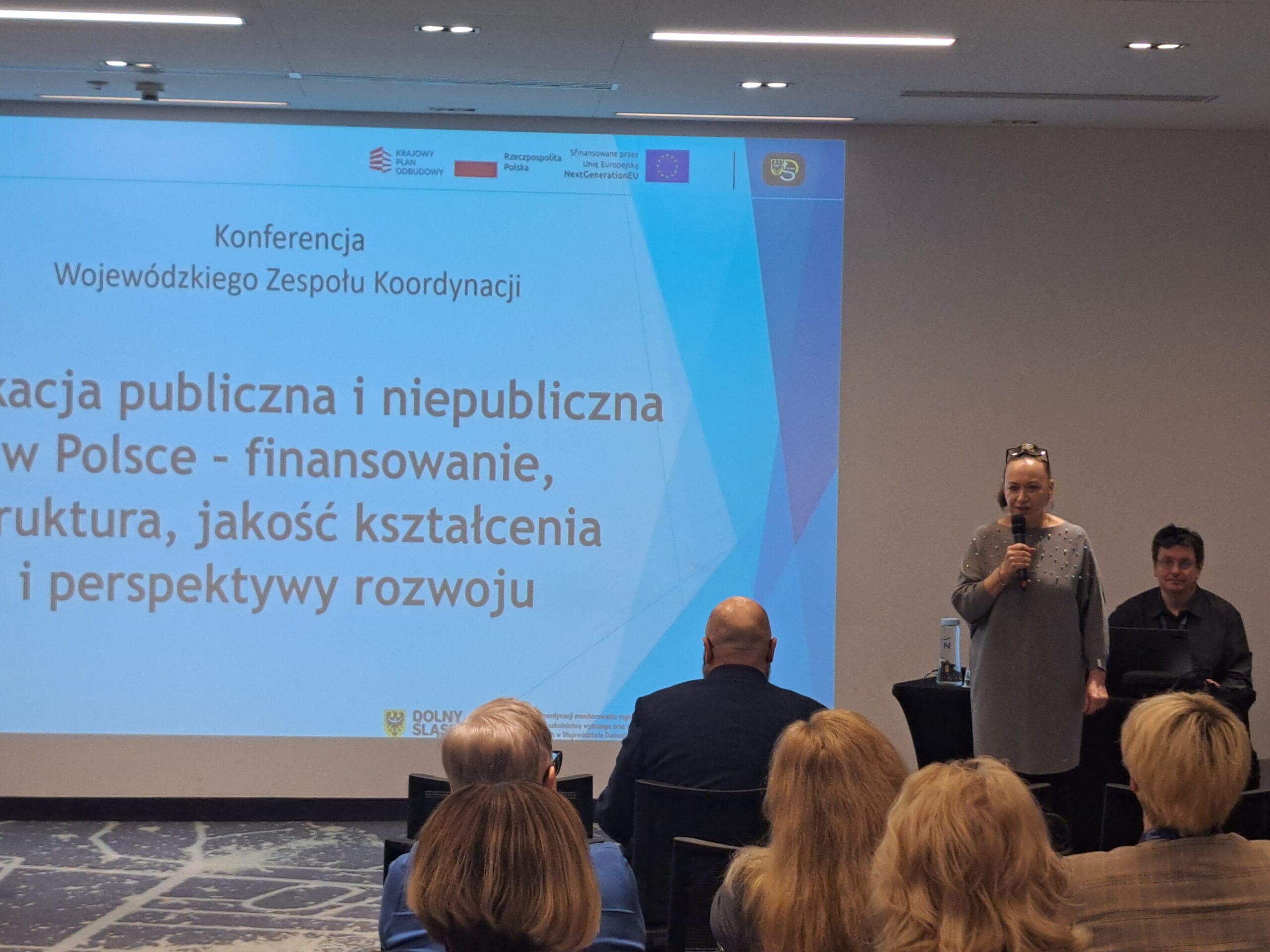 i perspektywy rozwoju” organizowana w ramach działalności Wojewódzkiego Zespołu Koordynacji. Wydarzenie to było elementem projektu „Zbudowanie systemu koordynacji i monitorowania regionalnych działań na rzecz kształcenia zawodowego, szkolnictwa wyższego oraz uczenia się przez całe życie, w tym uczenia się dorosłych, w województwie dolnośląskim”, finansowanym ze środków Krajowego Planu Odbudowy. Konferencja, w której uczestniczyło 75 osób – przedstawicieli szkół oraz przedszkoli publicznych i niepublicznych, samorządowców, naukowców, wykładowców akademickich, konsultantów oraz ekspertów zatrudnionych w projekcie, okazała się ogromnym sukcesem.