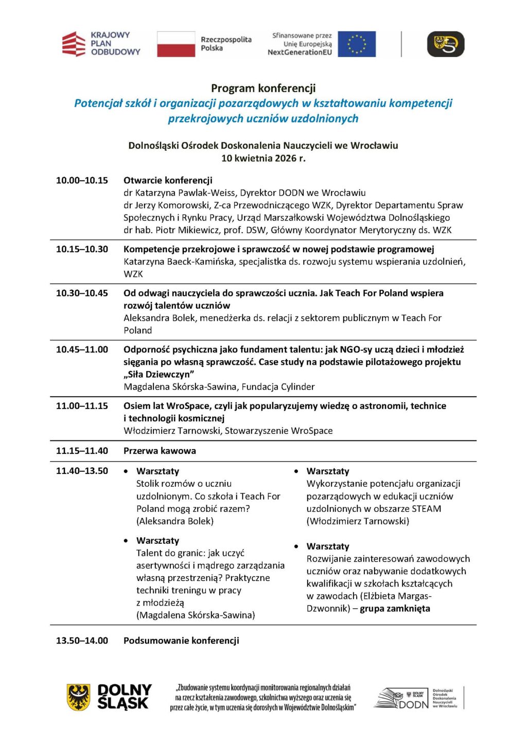 Strona główna»WZK Konferencje»10.04.2026 r. – Konferencja „Potencjał szkół i organizacji pozarządowych w kształtowaniu kompetencji przekrojowych uczniów uzdolnionych”