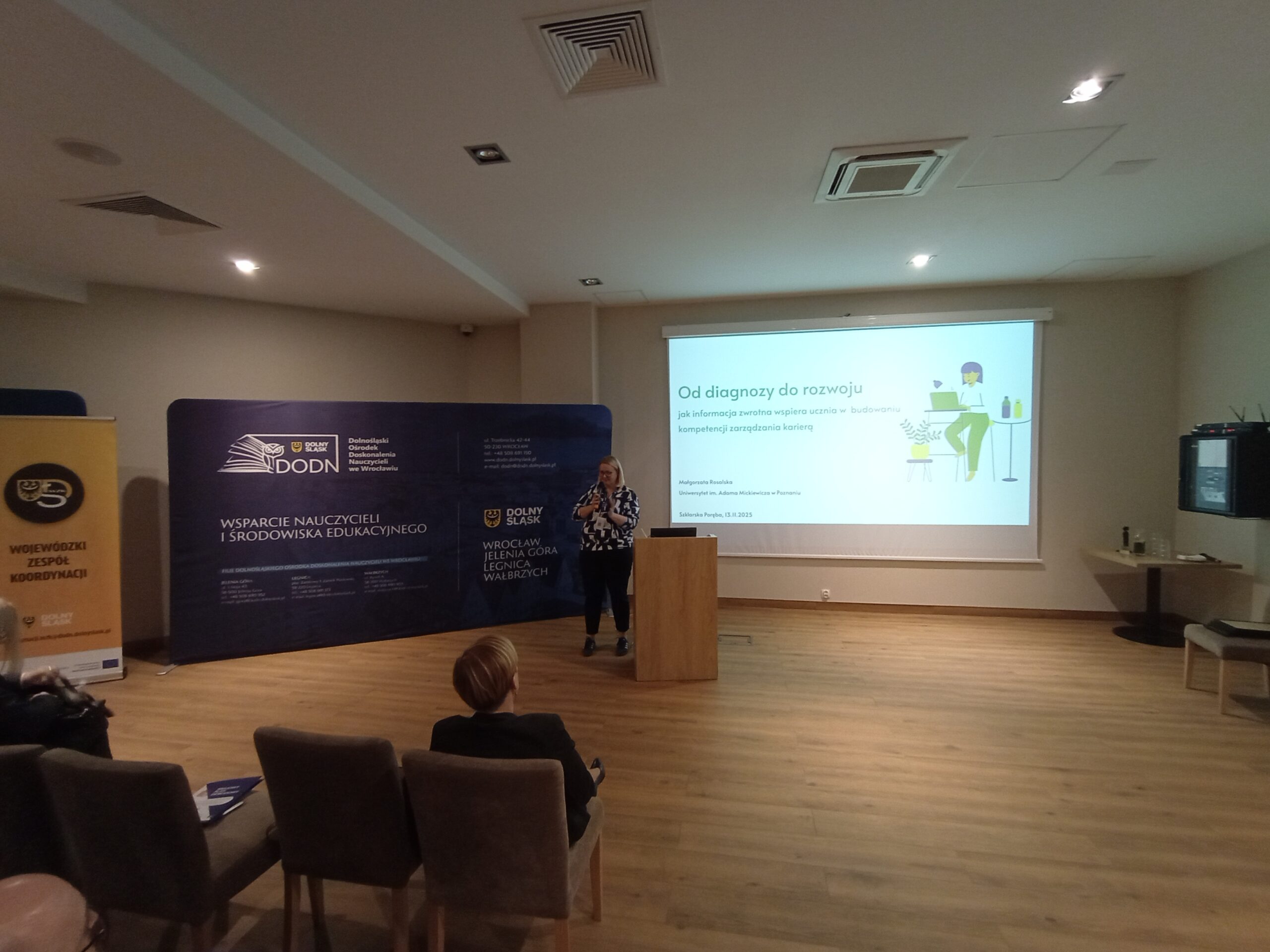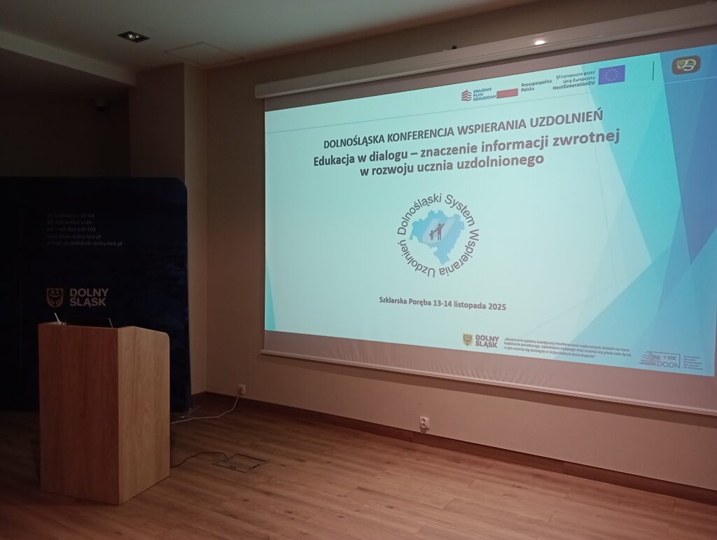 W dniach 13–14 listopada 2025 r. w Szklarskiej Porębie odbyła się Dolnośląska Konferencja Wspierania Uzdolnień pt. „Szkoła w dialogu – znaczenie informacji zwrotnej w rozwoju ucznia uzdolnionego”. To ważne wydarzenie edukacyjne zostało zrealizowane w ramach projektu „Zbudowanie systemu koordynacji i monitorowania regionalnych działań na rzecz kształcenia zawodowego, szkolnictwa wyższego oraz uczenia się przez całe życie, w tym uczenia się dorosłych, w województwie dolnośląskim”. Było ono adresowane do dyrektorów i liderów wspierania uzdolnień ze szkół należących do Dolnośląskiej Sieci Szkół Wspierających Uzdolnienia oraz aspirujących do dołączenia do niej.