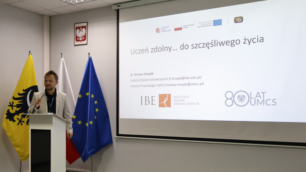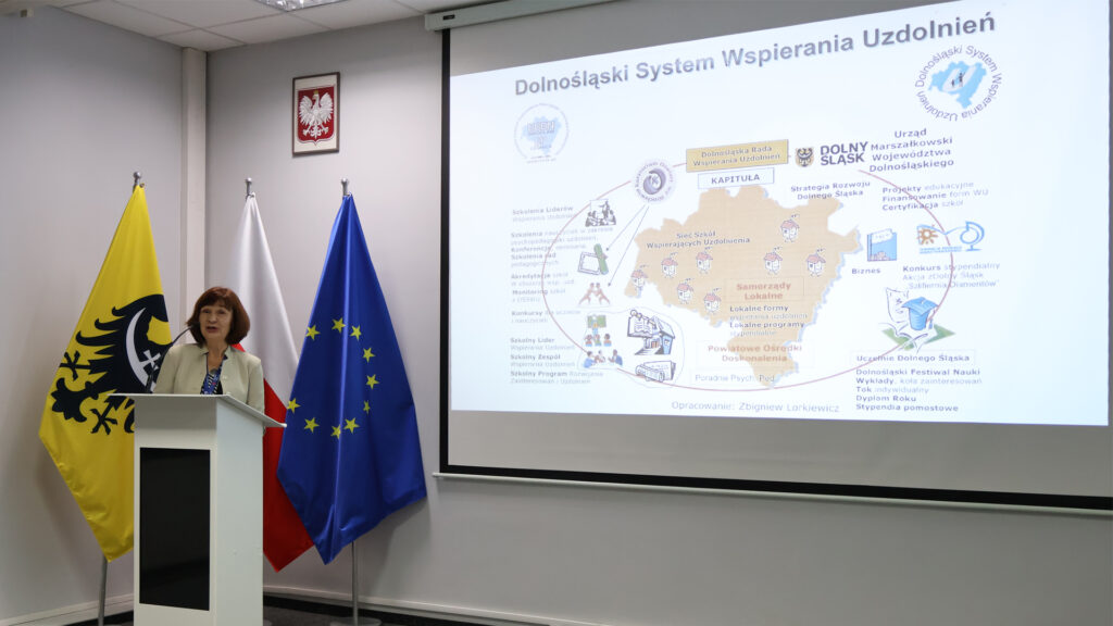 W dniu 13 września br. w DODN we Wrocławiu odbyła się Konferencja pn. „KIERUNKI ROZWOJU SZKOŁY WSPIERAJĄCEJ UZDOLNIENIA”, skierowana do Dyrektorów i Liderów ze Szkół należących do Dolnośląskiej Sieci Szkół Wspierających Uzdolnienia. Wydarzenie zorganizowane zostało przez nauczycieli-konsultantów zatrudnionych w DODN w ramach Projektu finansowanego ze środków KPO pn. „Zbudowanie systemu koordynacji i monitorowania regionalnych działań na rzecz kształcenia zawodowego, szkolnictwa wyższego oraz uczenia się przez całe życie w tym uczenia się dorosłych, w województwie dolnośląskim”. Wśród gości zaproszonych na konferencje znaleźli się m.in. Dyrektor Departamentu Spraw Społecznych i Rynku Pracy w Urzędzie Marszałkowskim – dr Jerzy Komorowski oraz dr hab. Piotr Mikiewicz prof. UD DSW – Główny Koordynator Merytoryczny ds. Wojewódzkiego Zespołu Koordynacji. Bardzo ciekawy i poruszający niezwykle ważny temat wykład wygłosił gość specjalny dr Tomasz Knopik, Instytut Psychologii UMCS oraz IBE.