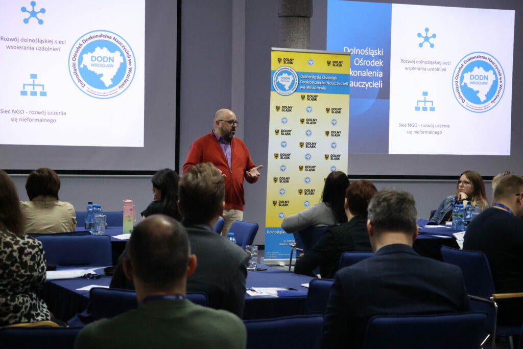 W dniu 26 listopada 2024 r. w DODN we Wrocławiu odbyła się Konferencja pn. ”Sieć NGO na rzecz uczenia się nieformalnego”. Wydarzenie zorganizowane zostało przez nauczycieli-konsultantów zatrudnionych w DODN w ramach Projektu finansowanego ze środków KPO pn. „Zbudowanie systemu koordynacji i monitorowania regionalnych działań na rzecz kształcenia zawodowego, szkolnictwa wyższego oraz uczenia się przez całe życie w tym uczenia się dorosłych, w województwie dolnośląskim”.