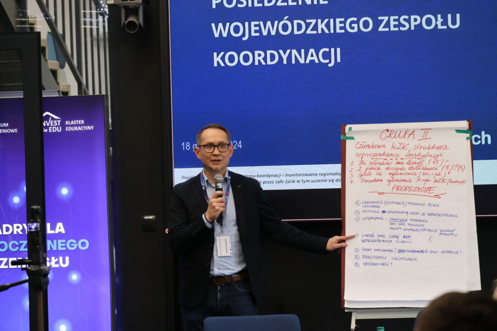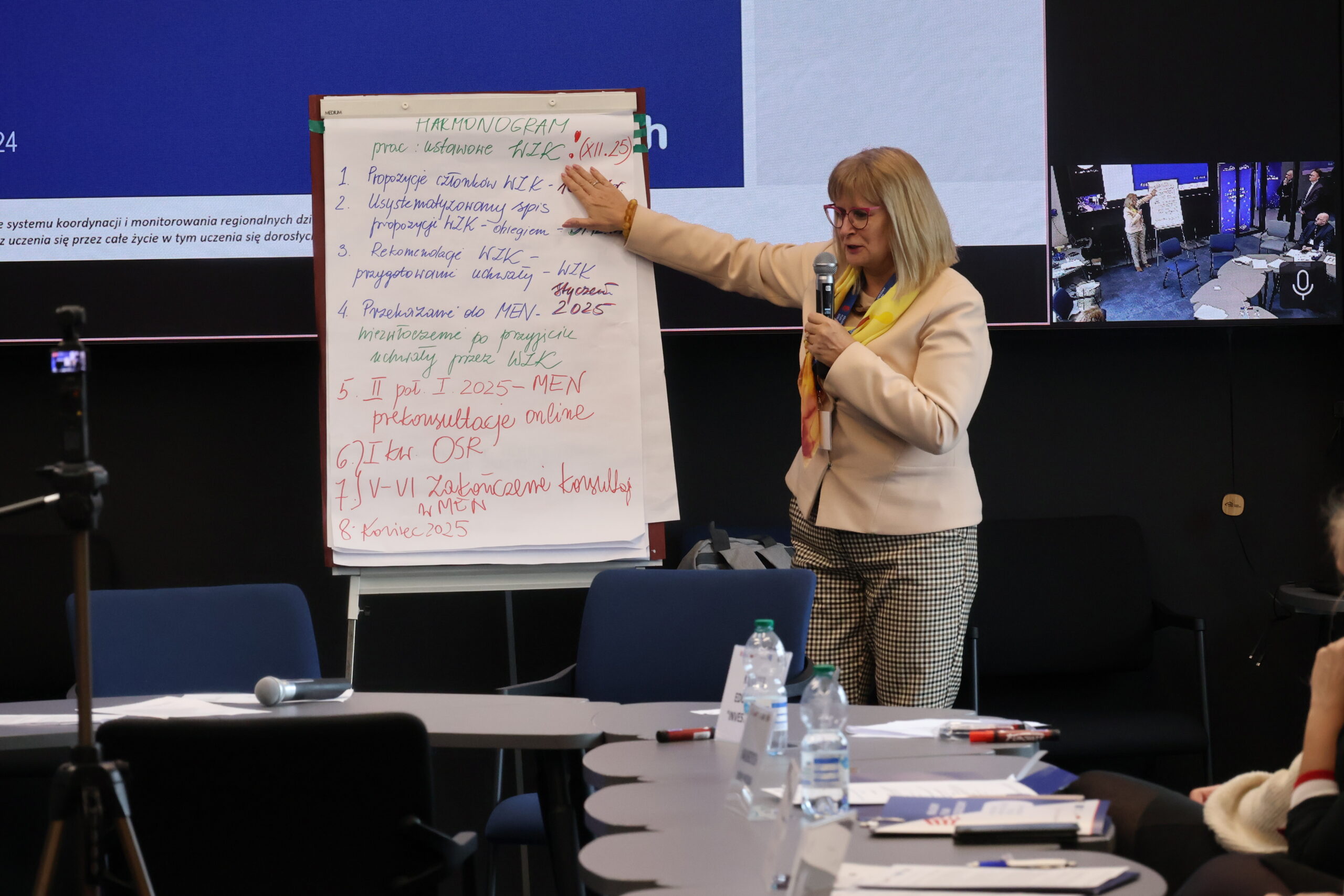 Obrady po raz kolejny odbyły się w nowej formule organizacyjnej, z udziałem zatrudnionego w ramach projektu zespołu ekspertów merytorycznych pod przewodnictwem Głównego Koordynatora Merytorycznego ds. WZK, dr hab. Piotra Mikiewicza, prof. UD DSW. Głównym celem posiedzenia było wypracowanie propozycji rekomendacji dotyczących umocowania funkcjonowania Wojewódzkich Zespołów Koordynacji (WZK) w przepisach prawach, podsumowanie konferencji WZK we Wrocławiu, w tym celu przeprowadzono warsztaty dotyczące założeń ustawowej legitymizacji WZK. Ponadto podczas posiedzenia zaprezentowano raport dotyczący społeczno-gospodarczych uwarunkowań uczenia się przez całe życie (LLL) w województwie dolnośląskim, a także zaprezentowano metodologię międzynarodowych badań kompetencji uczniów TIMSS (Trend in International Mathematics and Science Studies) i Międzynarodowe Badanie Umiejętności Dorosłych PIAAC. Podczas spotkania przedstawiono również istotne kwestie związane z funkcjonowaniem Międzyregionalnego Zespołu Koordynacyjnego i sieci tematycznych FERS oraz zasygnalizowano ważne tematy dla WZK dotyczące m. in: badań na temat innowacji edukacyjnych, sytuacji doradztwa i poradnictwa zawodowego na Dolnym Śląsku, postępów prac legislacyjnych nad Rozporządzeniem MEN w sprawie sposobu podziału łącznej kwoty potrzeb oświatowych między JST w roku 2025, a także informacje dotyczące Polityki Cyfrowej Transformacji Edukacji oraz projektów realizowanych przez PARP na powierzenie organizacji i prowadzenia sektorowych rad ds. kompetencji i FRSE dotyczących Indywidualnych Kont Rozwojowych (IKR) Junior oraz Branżowej Szkoły Ćwiczeń (BSĆ).