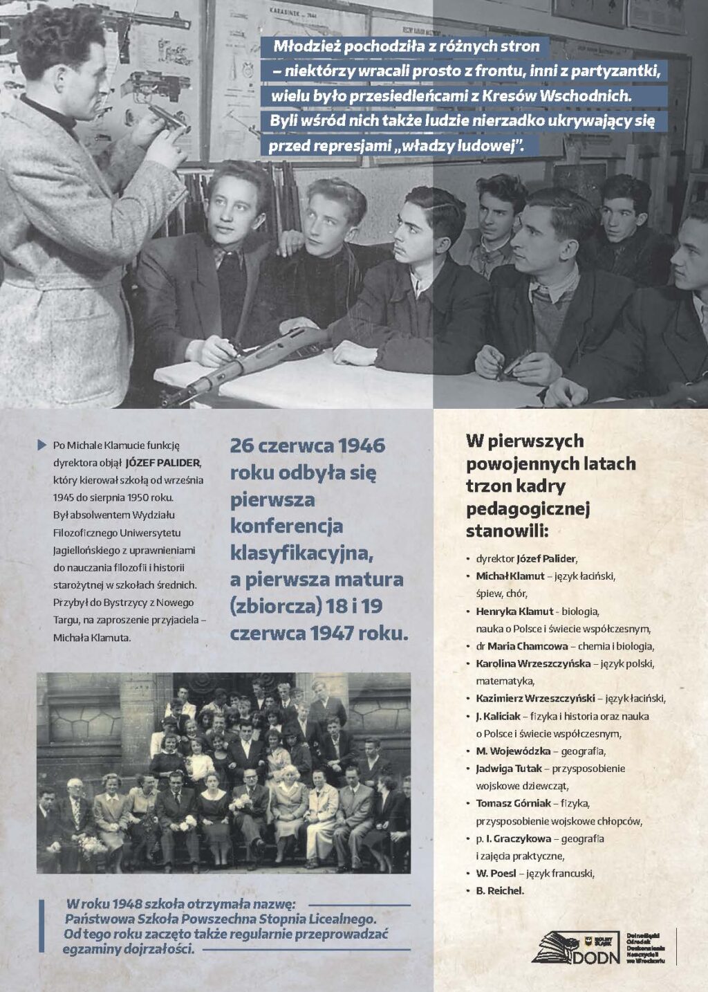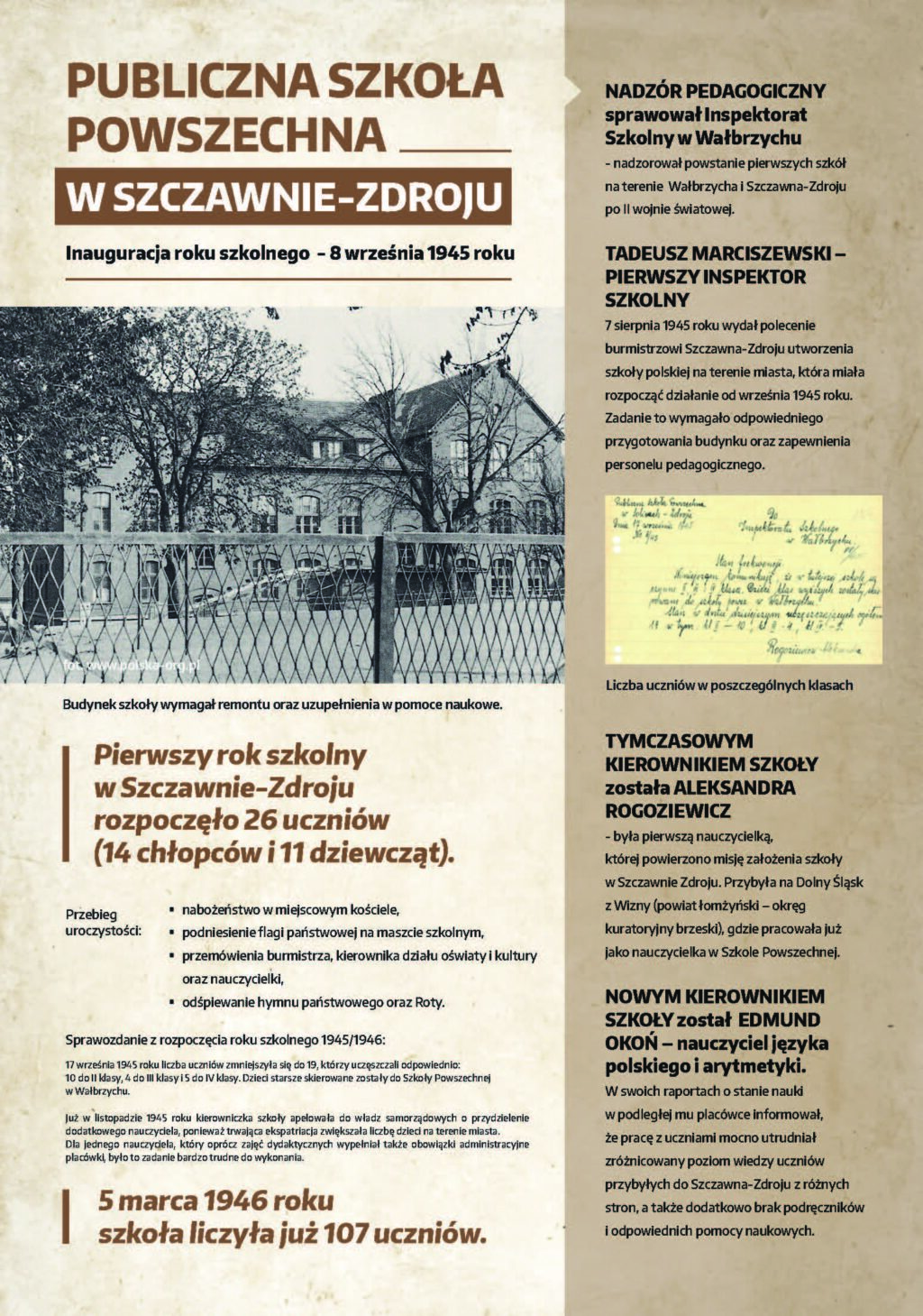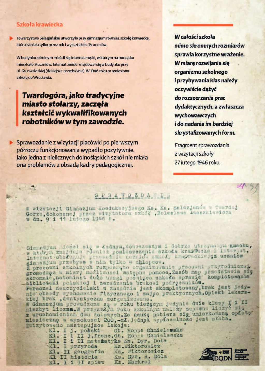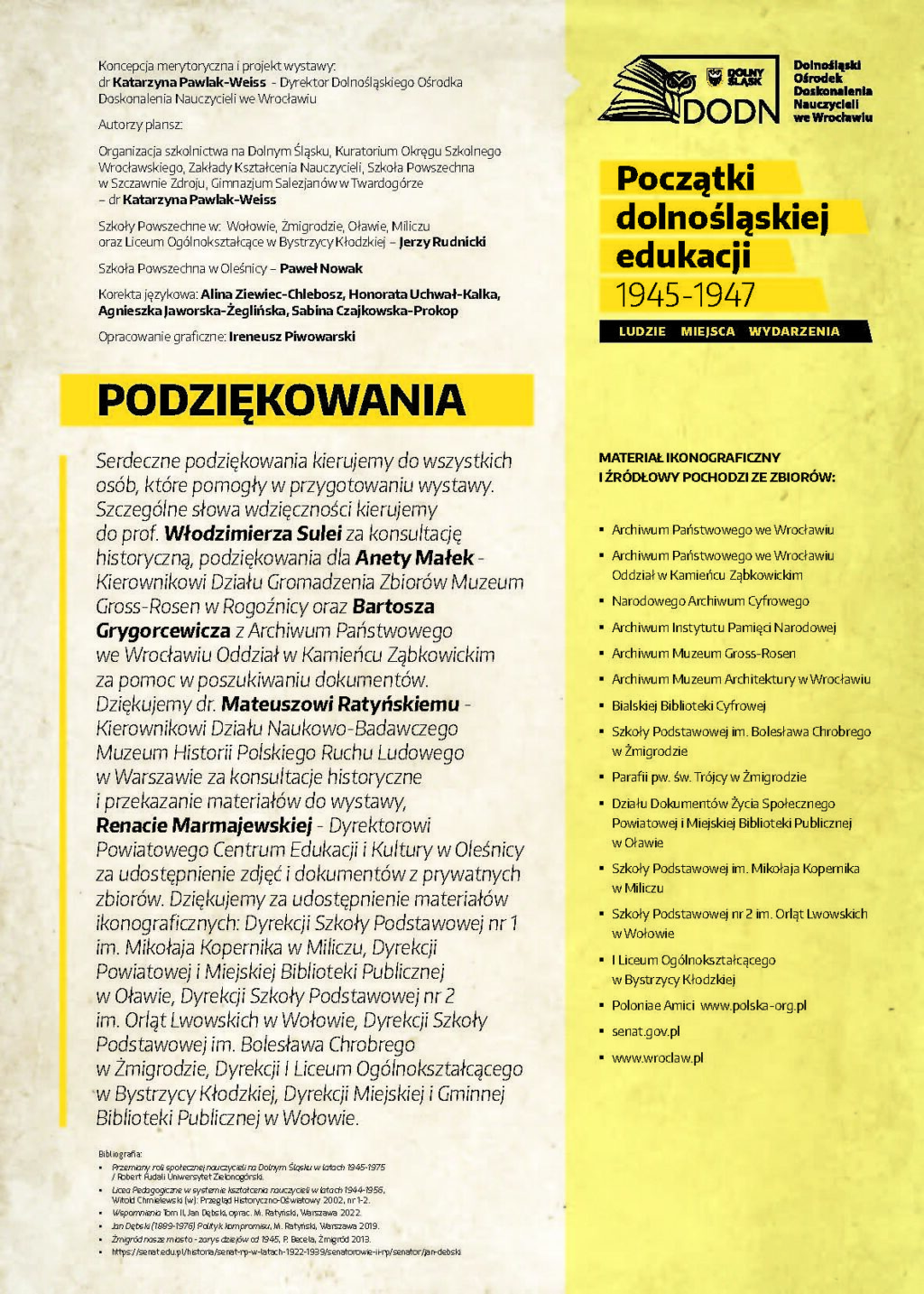 Dolnośląski Ośrodek Doskonalenia Nauczycieli we Wrocławiu zaprasza na wystawę poświęconą początkom polskiej edukacji na Dolnym Śląsku w latach 1945–1947, przygotowaną z okazji 80. rocznicy wybrzmienia pierwszego dzwonka w placówkach oświatowych na Dolnym Śląsku.