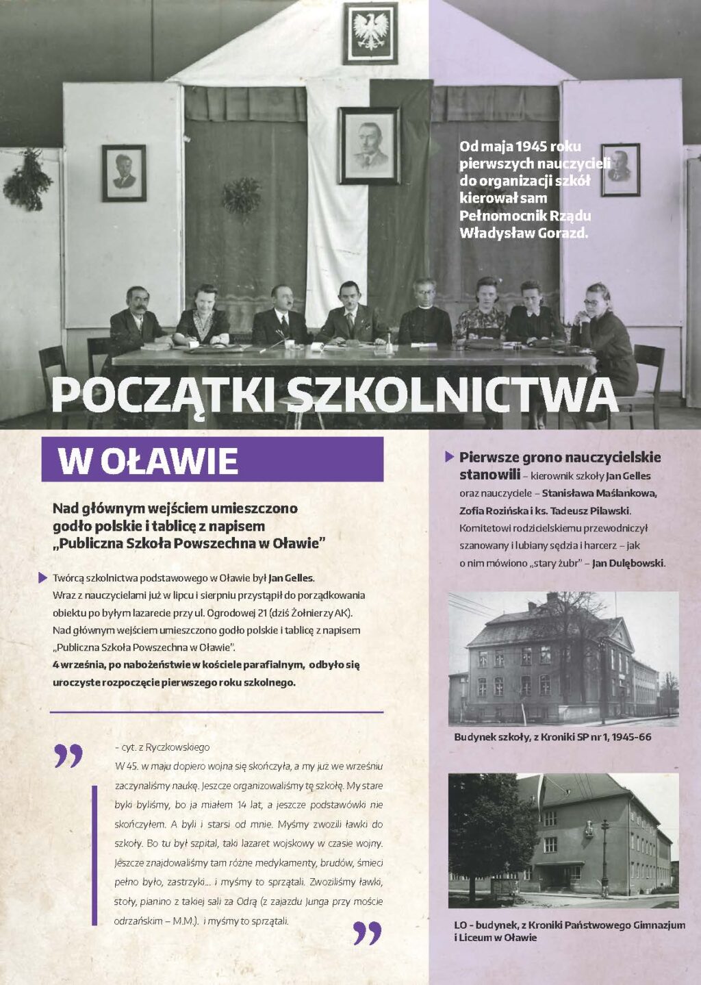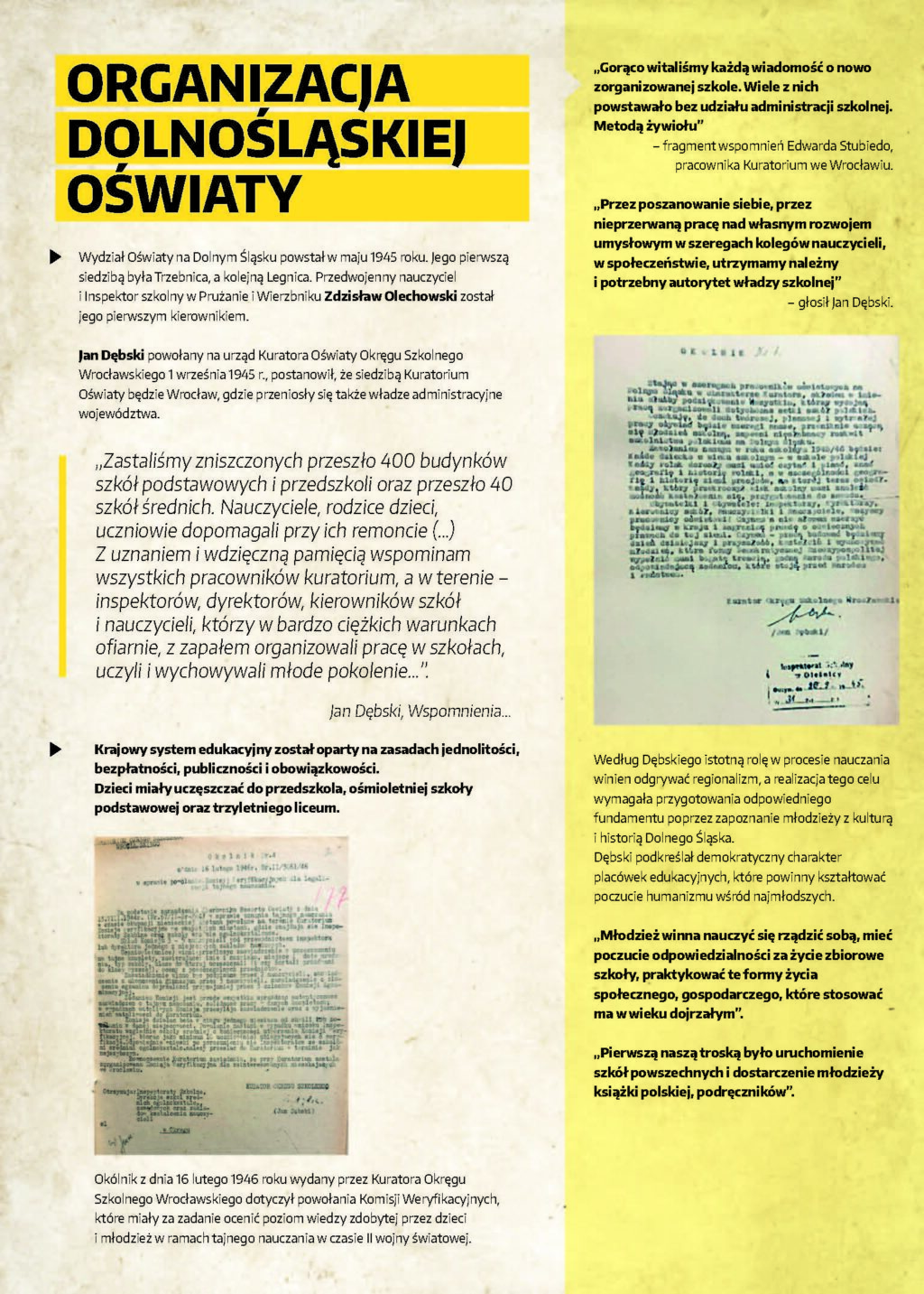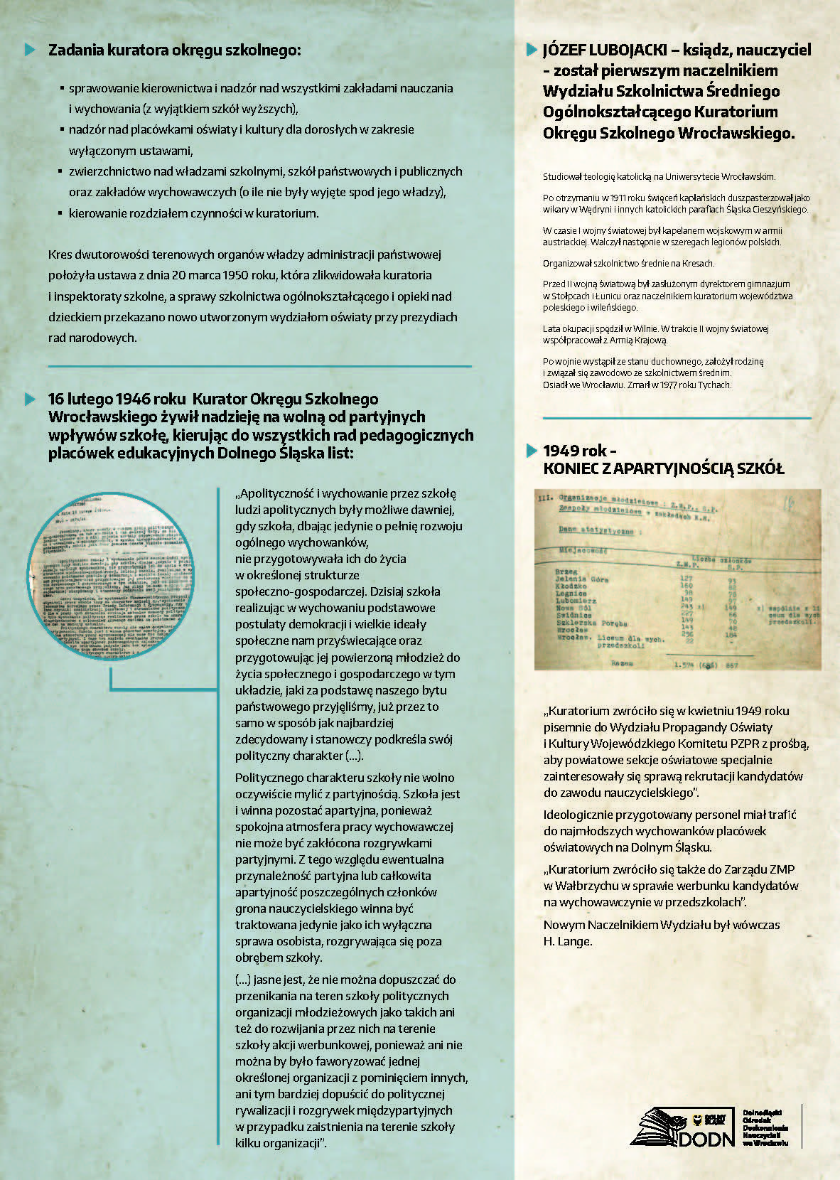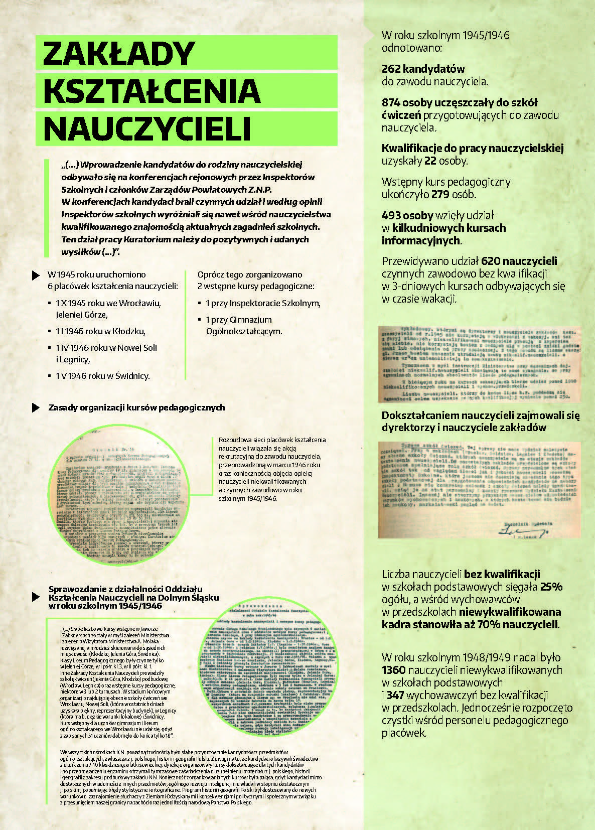 Ważne jest również ukazanie doświadczeń i często wyjątkowych kompetencji osób skierowanych do pracy na Dolnym Śląsku. Część z nich stanowiły osoby zasłużone dla edukacji w II RP, a także zaangażowane w prowadzenie tajnego nauczania podczas okupacji w czasie II wojny światowej.