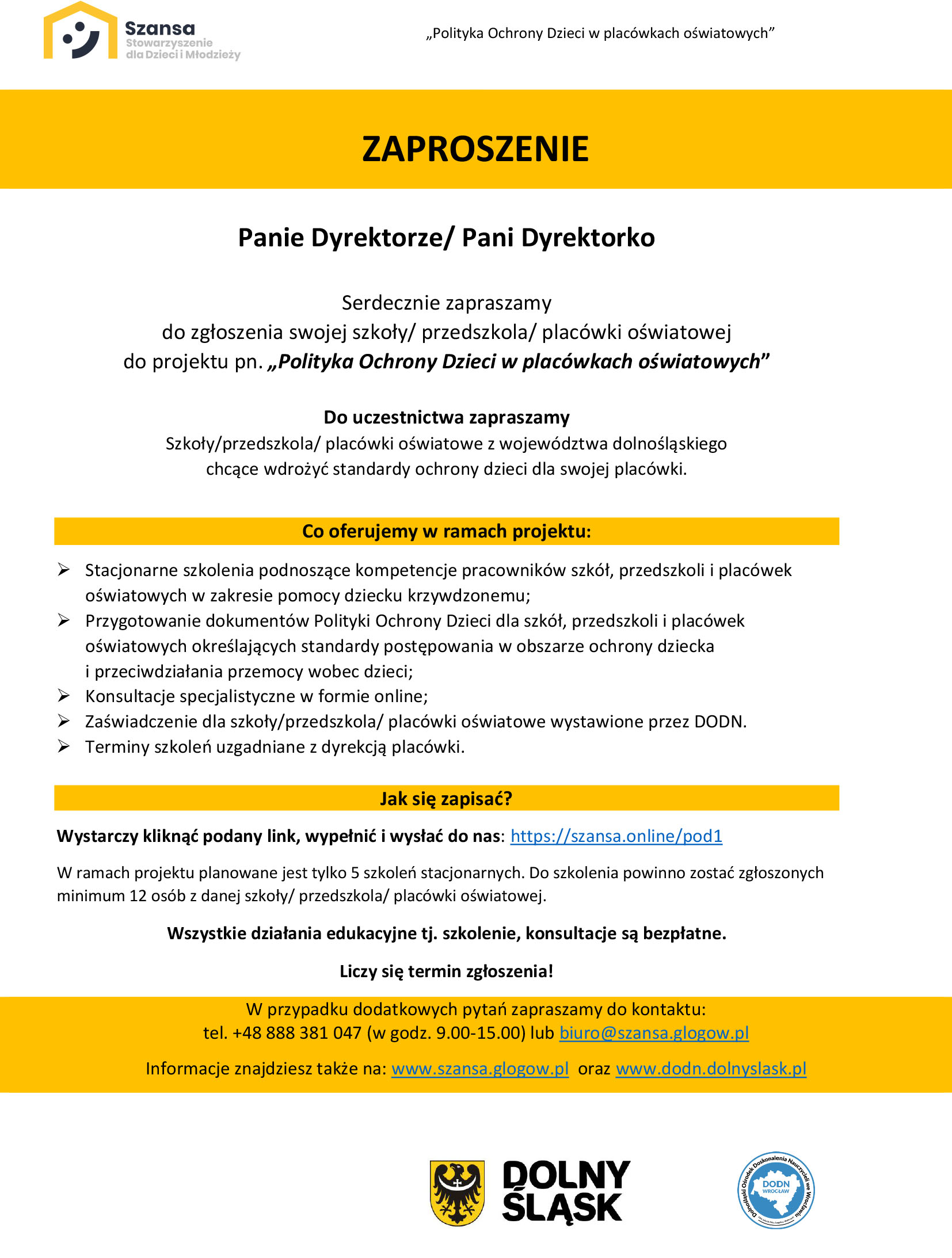Zaproszenie dla GRUPY 1: